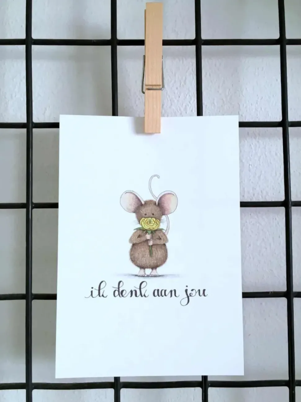 Anillustration Ansichtkaart Muis ik denk aan jou