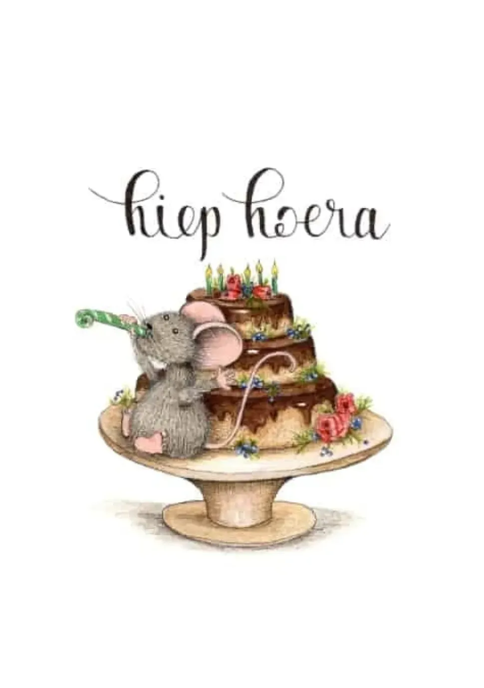 Anillustration Ansichtkaart Muis op verjaardagstaart