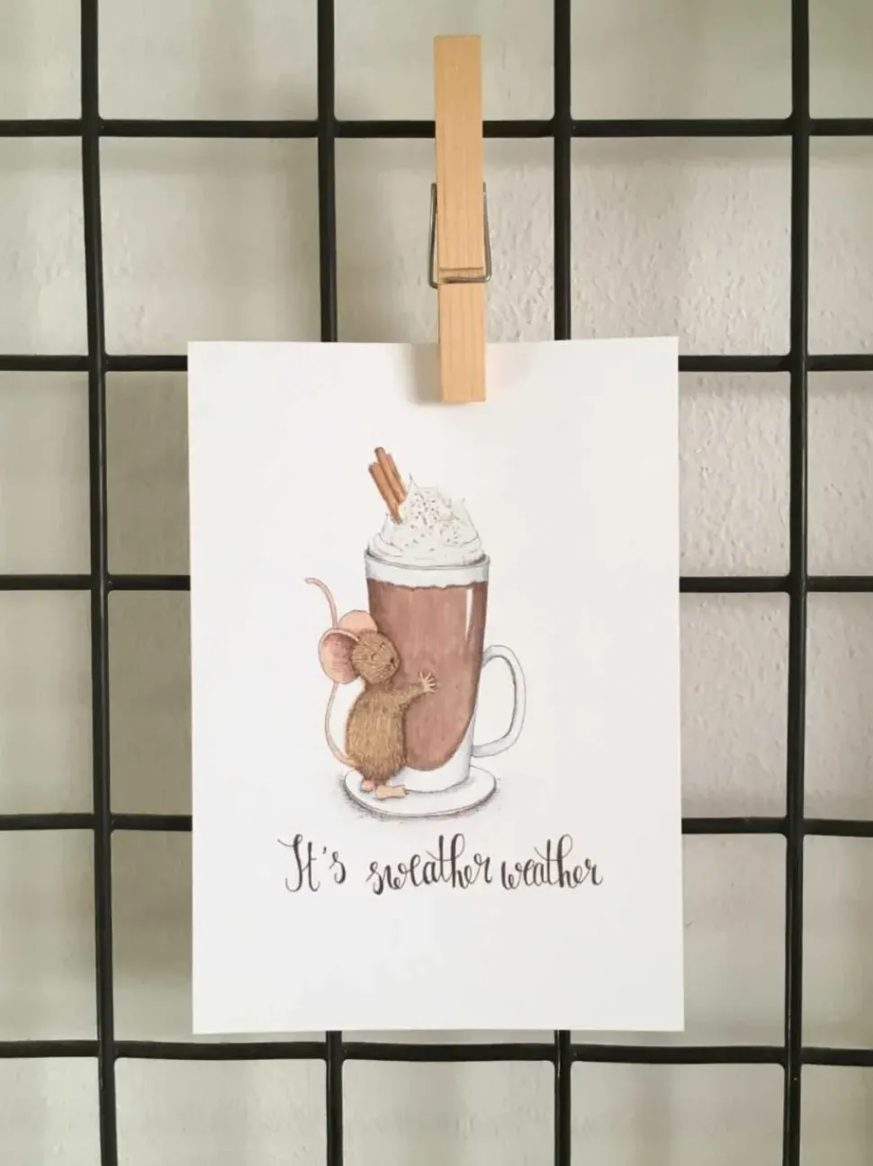 Anillustration Ansichtkaart Muisje knuffelt chocolademelk