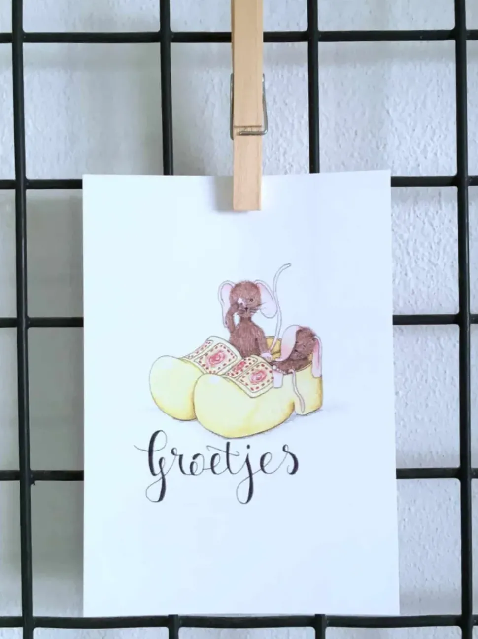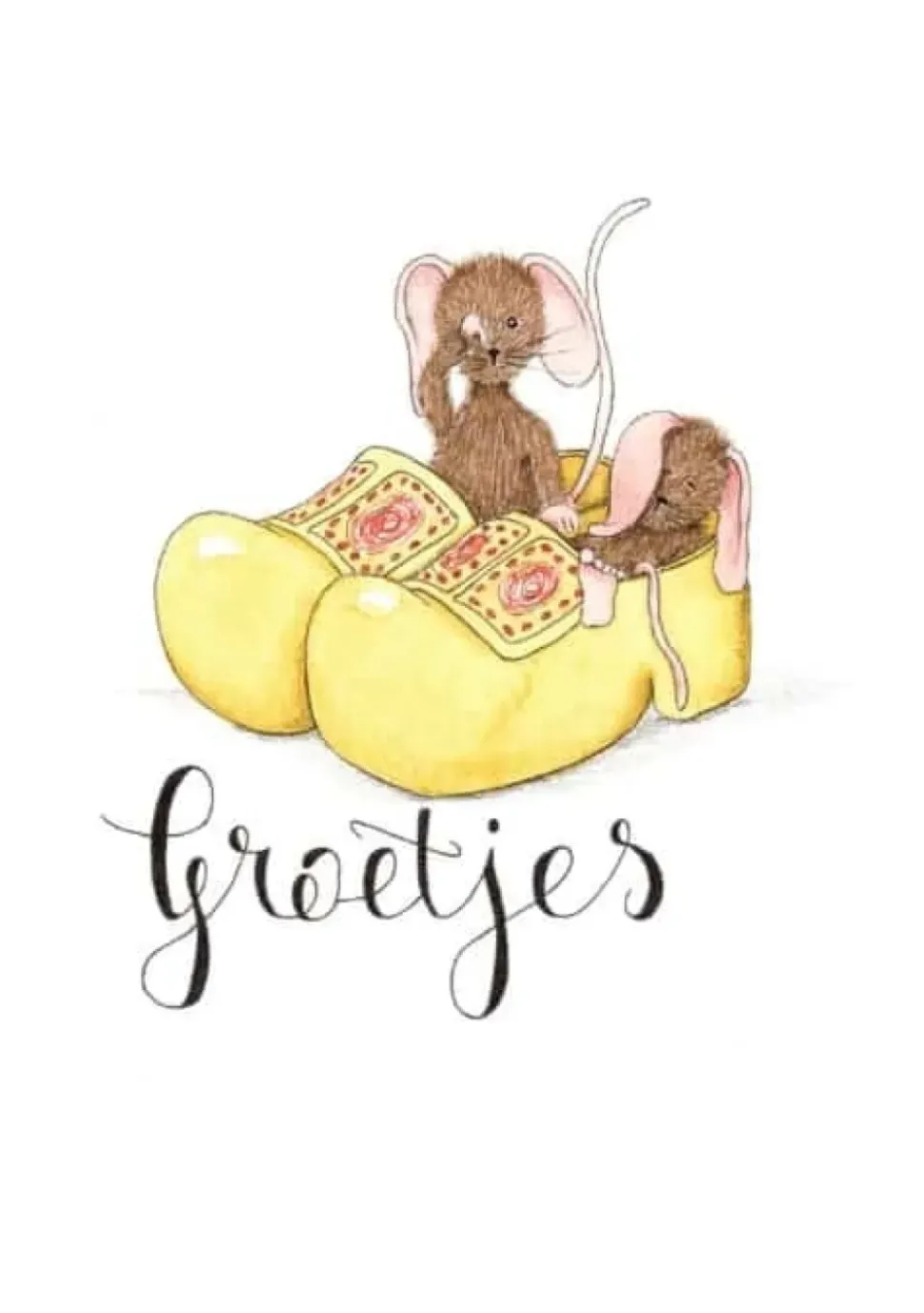 Anillustration Ansichtkaart Slapende muisjes in klompen