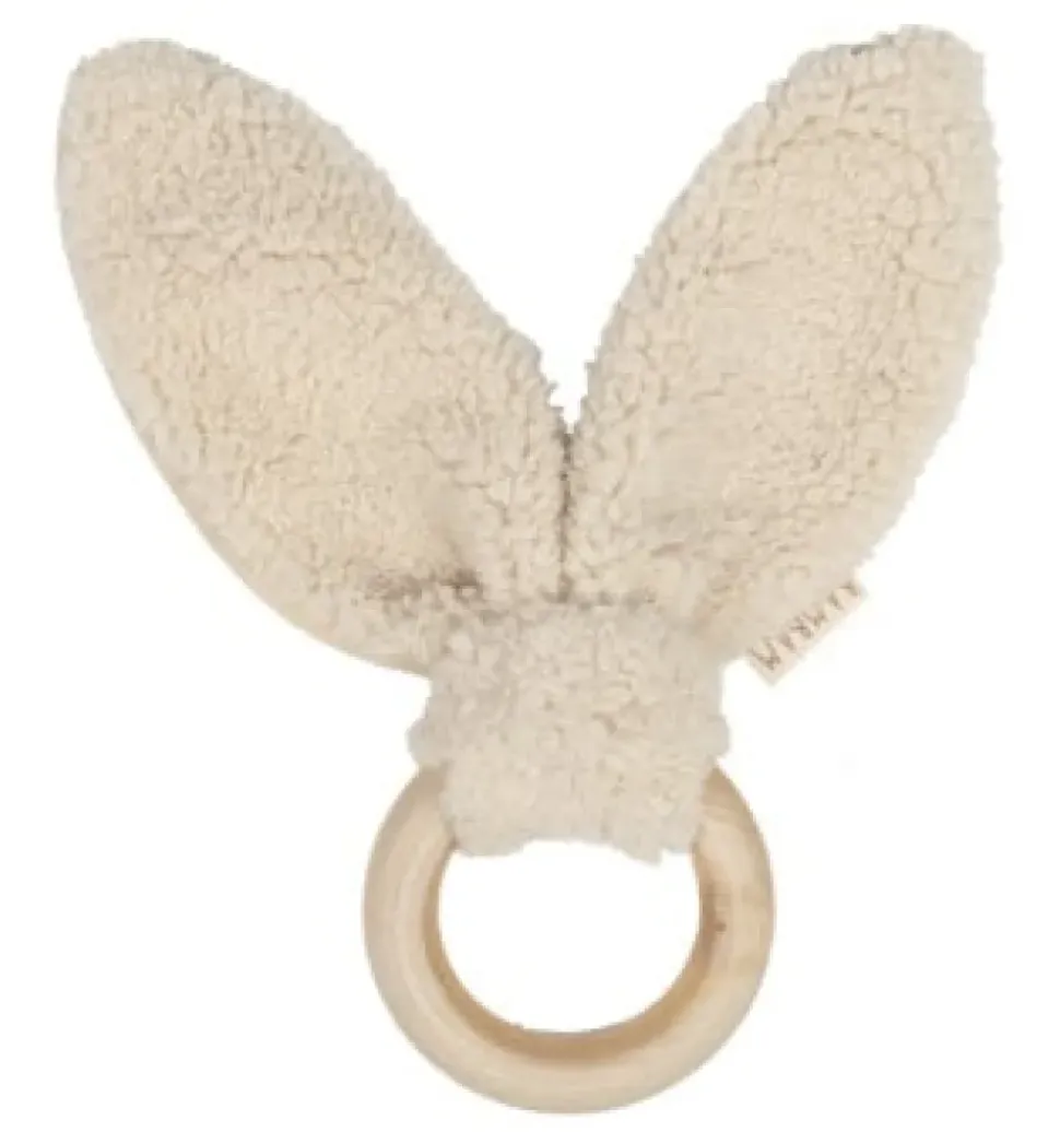 Bijten en knuffelen tegelijk! Deze bijtring van BamBam, gemaakt van FSC hout, heeft zachte oortjes van gerecycled materiaal. De bijtring is 23 cm lang.