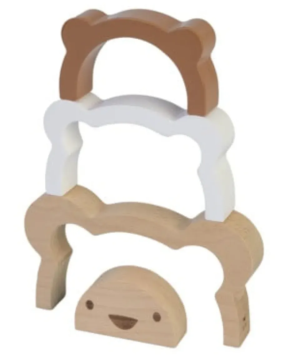 Deze beer van FSC Hout in naturel hout, wit en bruin kan je op vele manieren stapelen. Dit maakt de stapeltoren tot leerzaam speelgoed waarmee je de fijne motoriek van je kindje kunt trainen.