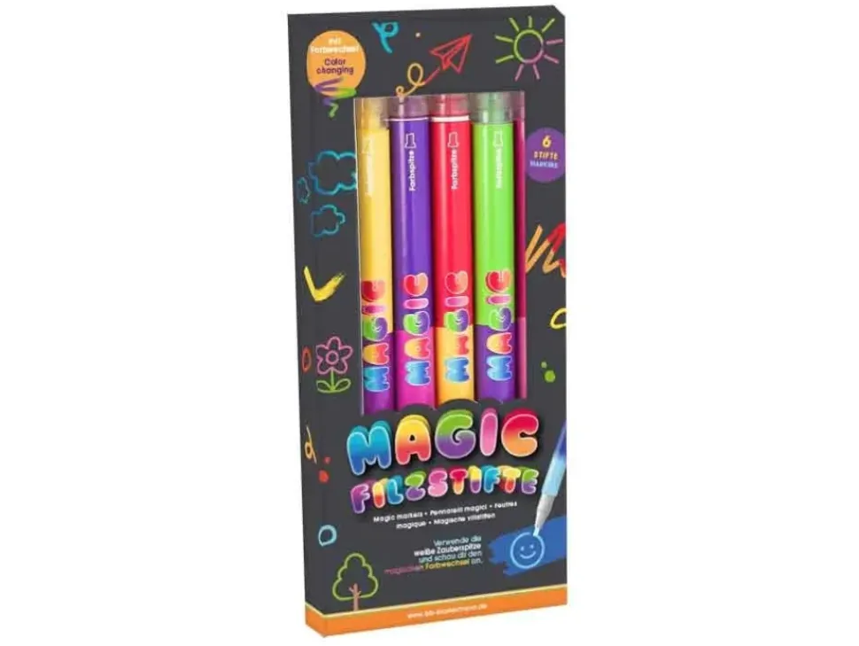 Deze set bestaat uit 6 viltstiften. De magic viltstiften worden willekeurig (per set van 6) verkocht.