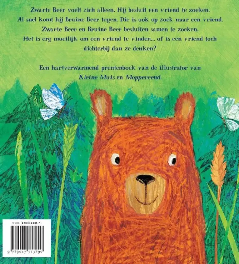 Twee beren zoeken een beste vriend… ‘Hallo,’ zei Zwarte Beer. ‘Hallo,’ zei Bruine Beer. Hij klonk een beetje verbaasd. ‘Wat doe jij hier?’ vroeg Zwarte Beer. ‘Ik zoek een vriend,’ antwoordde Bruine Beer.