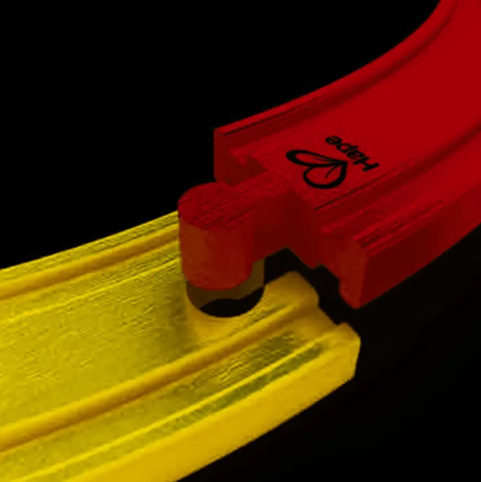 Een rode houten tractor die op de rails van Bigjigs kan rijden, dat kan met deze set die bestaat uit de trekker met een wagon. De trekker kan ook op de rails van de meeste andere bekende treinmerken rijden.