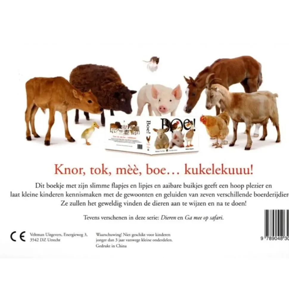 Knor, tok, mèè, boe… kukelekuuu! Dit boekje met zijn slimme flapjes en lipjes en aaibare buikjes geeft een hoop plezier en laat kleine kinderen kennismaken met de gewoonten en geluiden van boerderijdieren. Ze zullen het geweldig vinden ze te voelen!