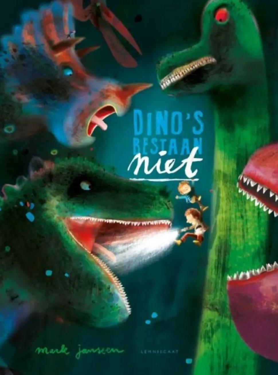 In dezelfde gedurfde, sprankelende stijl vertelt Mark nu het verhaal over twee broertjes die op dinojacht gaan. Nou ja, de oudste en meest stoere broer doet alsof, maarvoor de jongste is het allemaal heel serieus. En terecht!