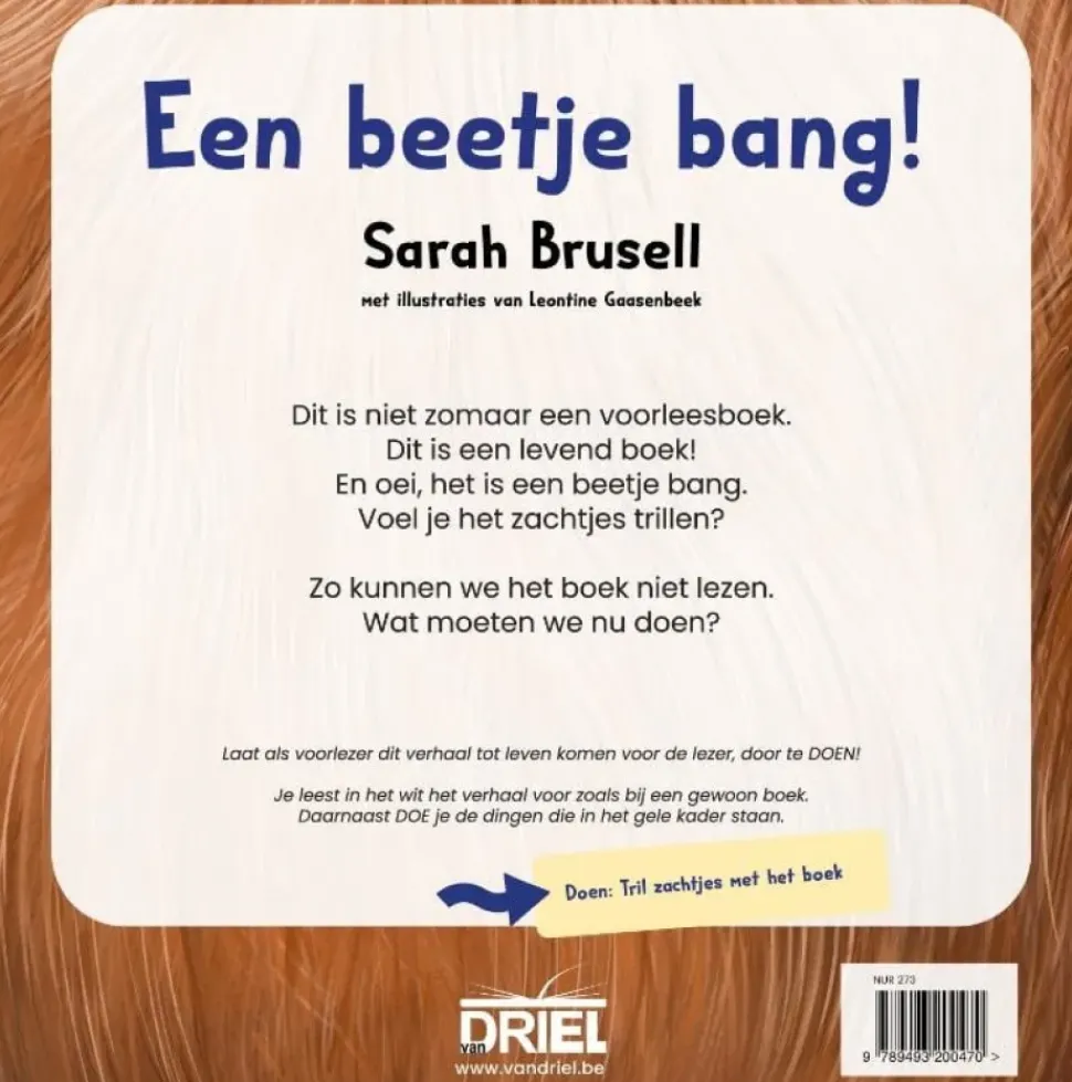 Dit is niet zomaar een voorleesboek. Dit is een levend boek! En oei, het is een beetje bang. Voel je het zachtjes trillen? Zo kunnen we het boek niet lezen. Wat moeten we nu doen?
