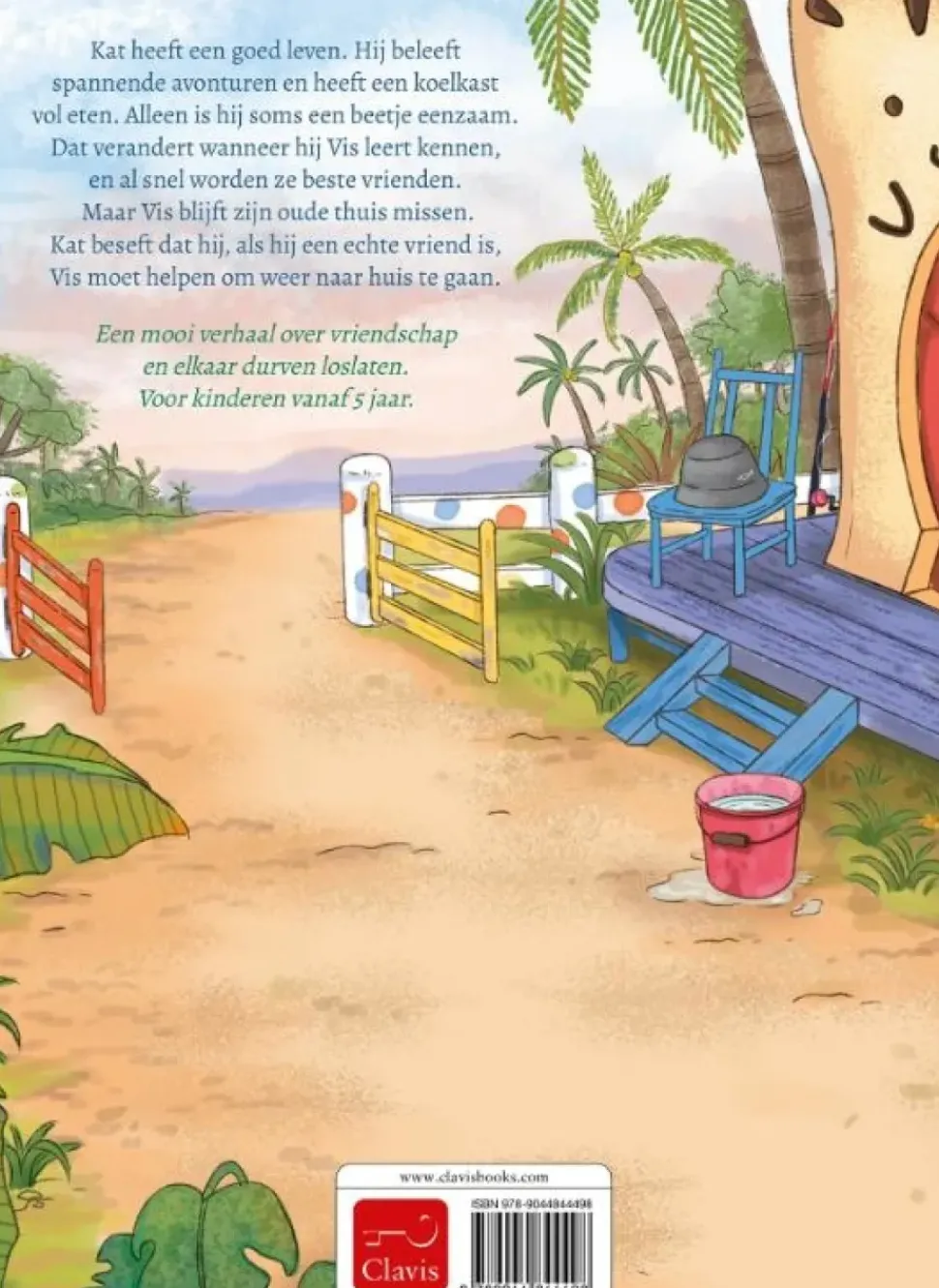 Kat beseft dat hij, als hij een echte vriend is, Vis moet helpen om weer naar huis te gaan. Een mooi verhaal over vriendschap en elkaar durven loslaten. Voor kinderen vanaf 5 jaar.