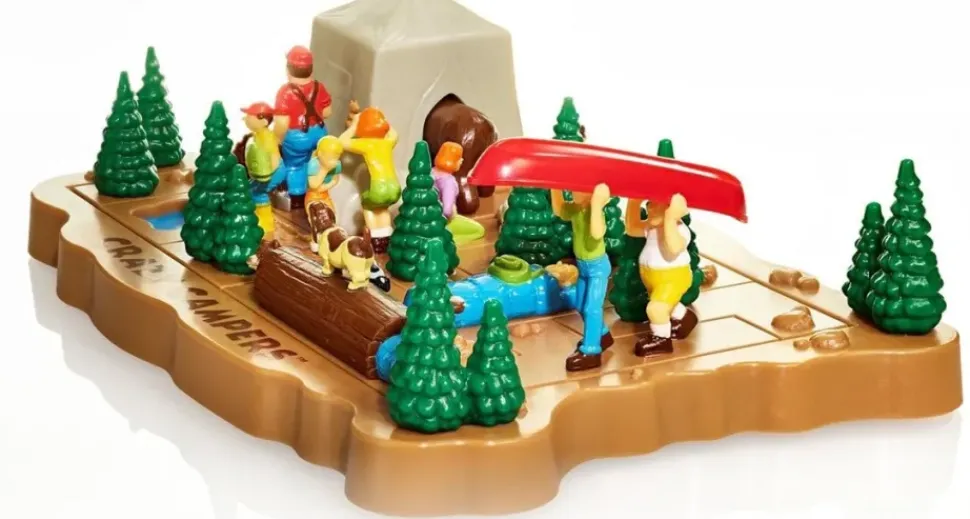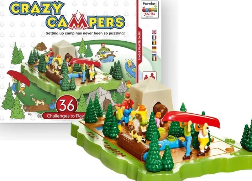 Maak je eigen tentenkamp op deze camping. Je begint altijd met het tentstuk met de nieuwsgierige beer. Kijk goed naar de opdracht en zet deze zoals afgebeeld in het rooster. Plaats daarna de 10 resterende stukken.