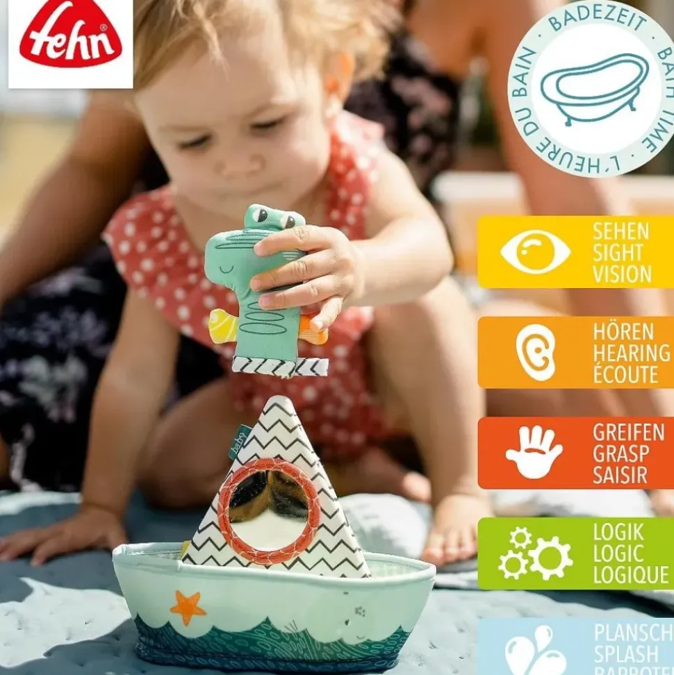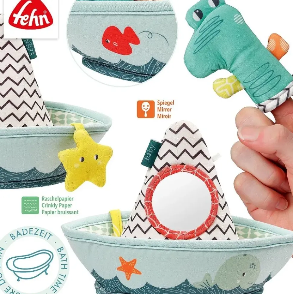 Fehn Badspeelgoed Bootje met Vingerpop Krokodil