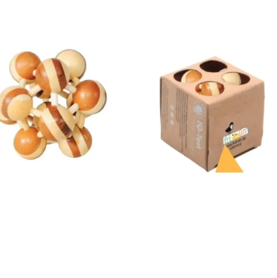 IQ-Test, 3D-Puzzel uit Bamboe "Atonium", Verpakking: 9x9x8 cm. Moeilijkheidsgraad 3 van 5.