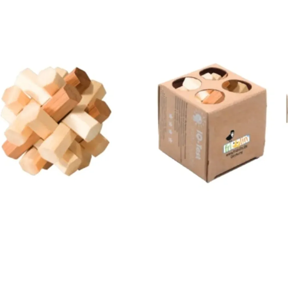 IQ-Test, 3D-Puzzel uit Bamboe "Double knot", Verpakking: 9x9x8 cm. Moeilijkheidsgraad 4 van 5.