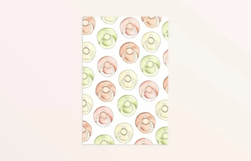 Kaart met een print van spenen, geschilderd met waterverf. De kaart is gedrukt op mooi stevig papier, dus je kan het ook neerzetten ter decoratie.