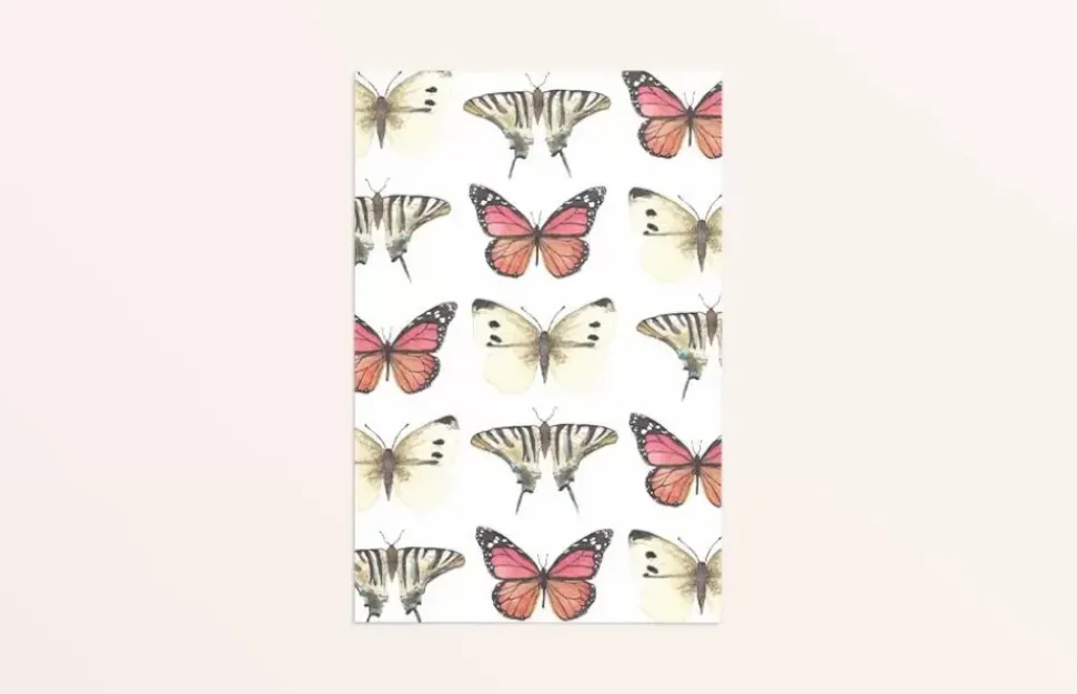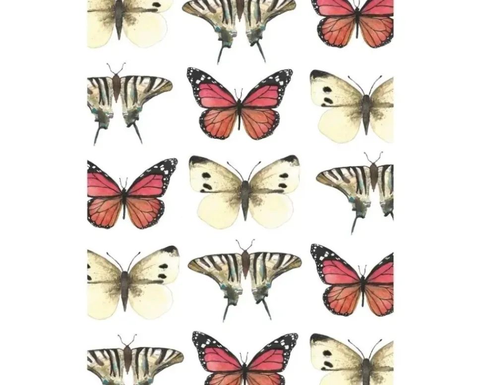 Kaart met een print van vintage vlinders, geschilderd met waterverf. De kaart is gedrukt op mooi stevig papier, dus je kan het ook neerzetten ter decoratie.