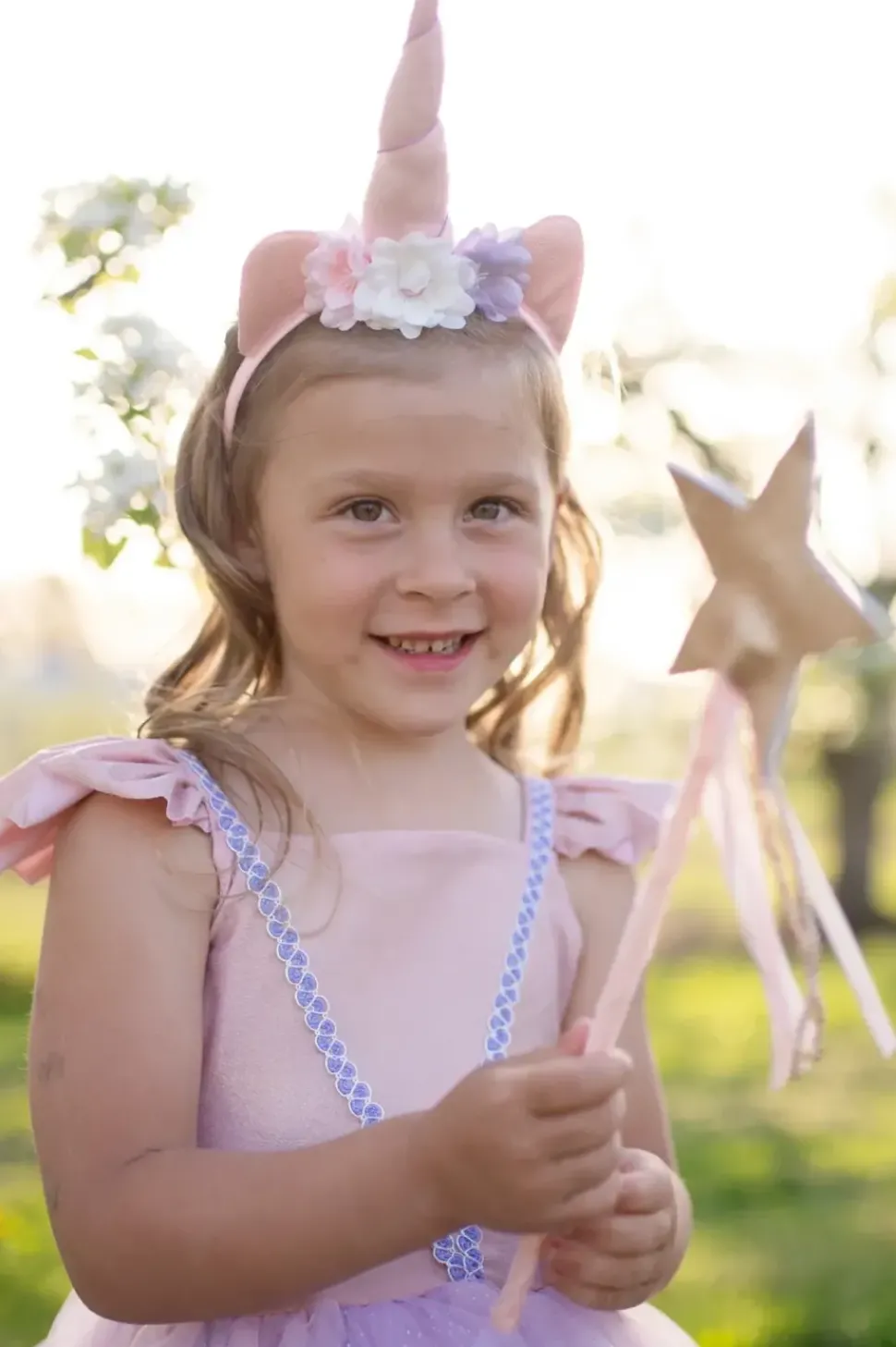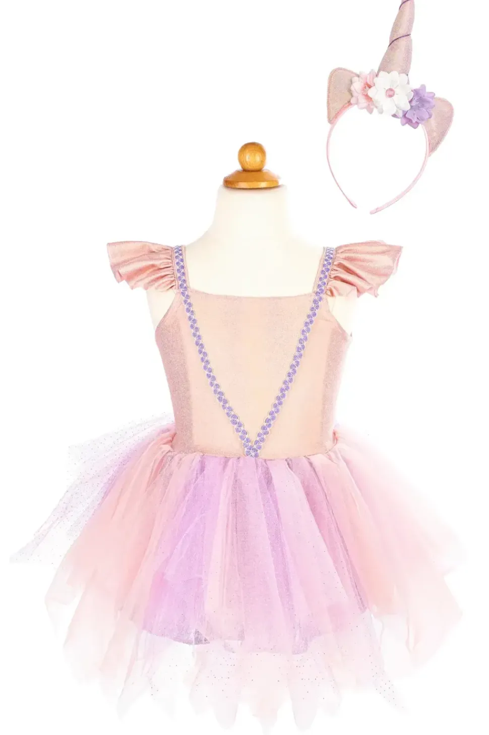 Great Pretenders Shimmer Unicorn Jurk & Diadeem Pink size 5-6