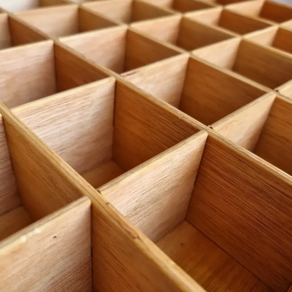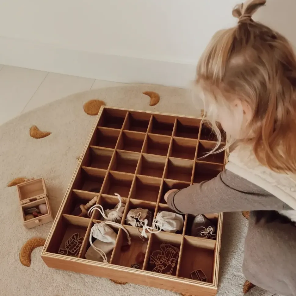 Deze houten sortbeerbak is 40x50x7 cm groot.