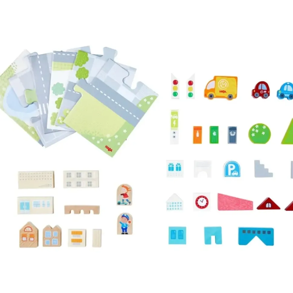 Er is iets aan de hand in de stad! Maar wat? Dat bepaal jij helemaal zelf! Met de puzzelstukken leg je de basis voor flatgebouwen, parken en straten – en voor de door jou verzonnen avonturen die Rieke en politieagent Paco in de stad beleven.