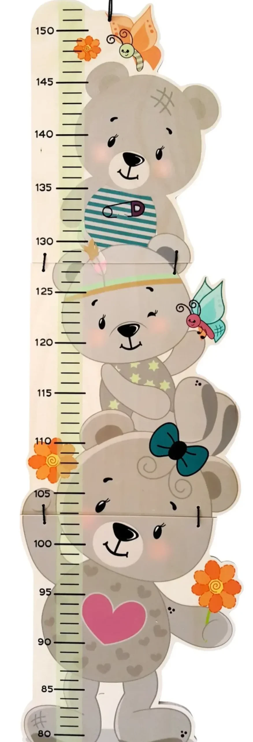 Kijken hoe groot je bent? Dan kan gemakkelijk met deze groeimeter. De vrolijk kijkende beren hebben bloemetjes tussen hun pootjes. De groeimeter is in een mooie kleur uitgevoerd.