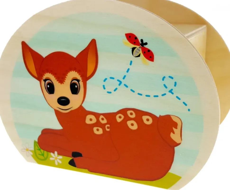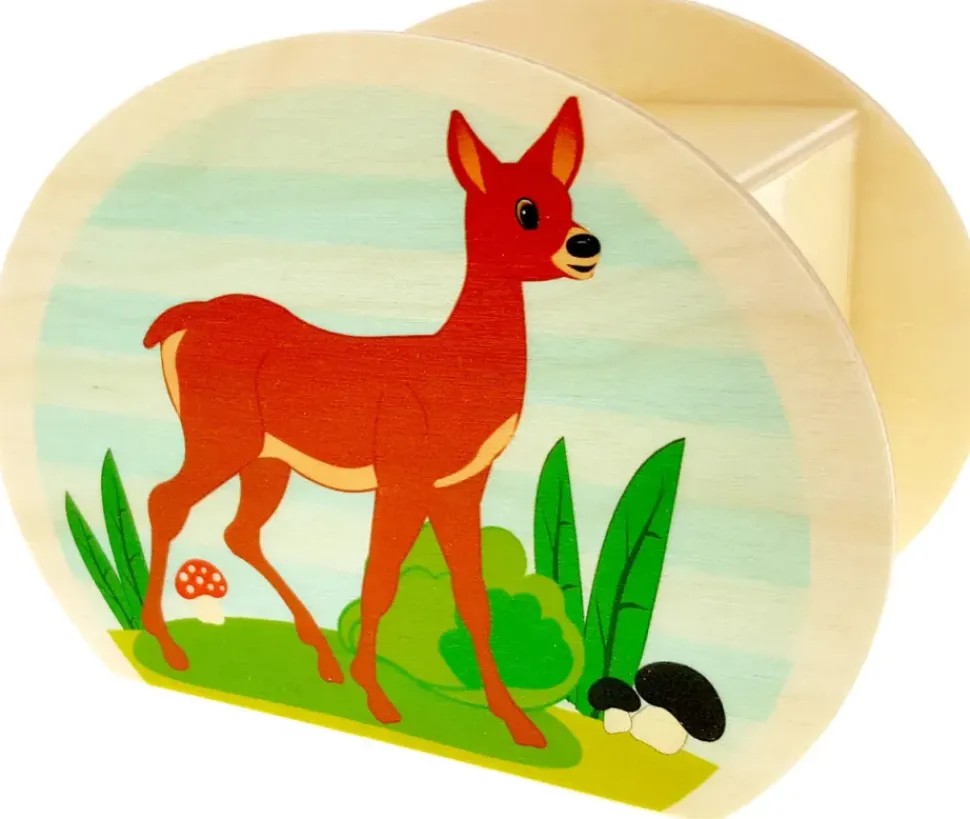 Een spaarpot die met de hand gemaakt is van hout. Deze spaarpot van Hess heeft een lief liggend ree aan de ene zijde en aan de andere zijde staat ze fier rechtop als motief. Leuk om te geven of te ontvangen.