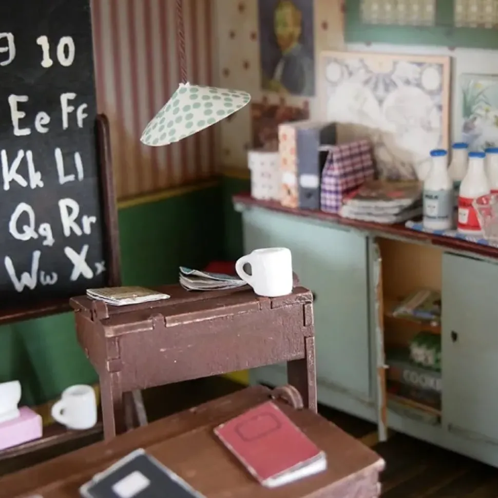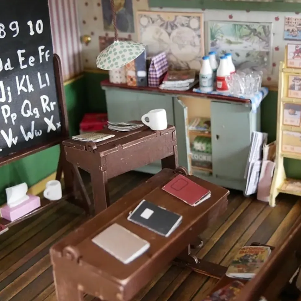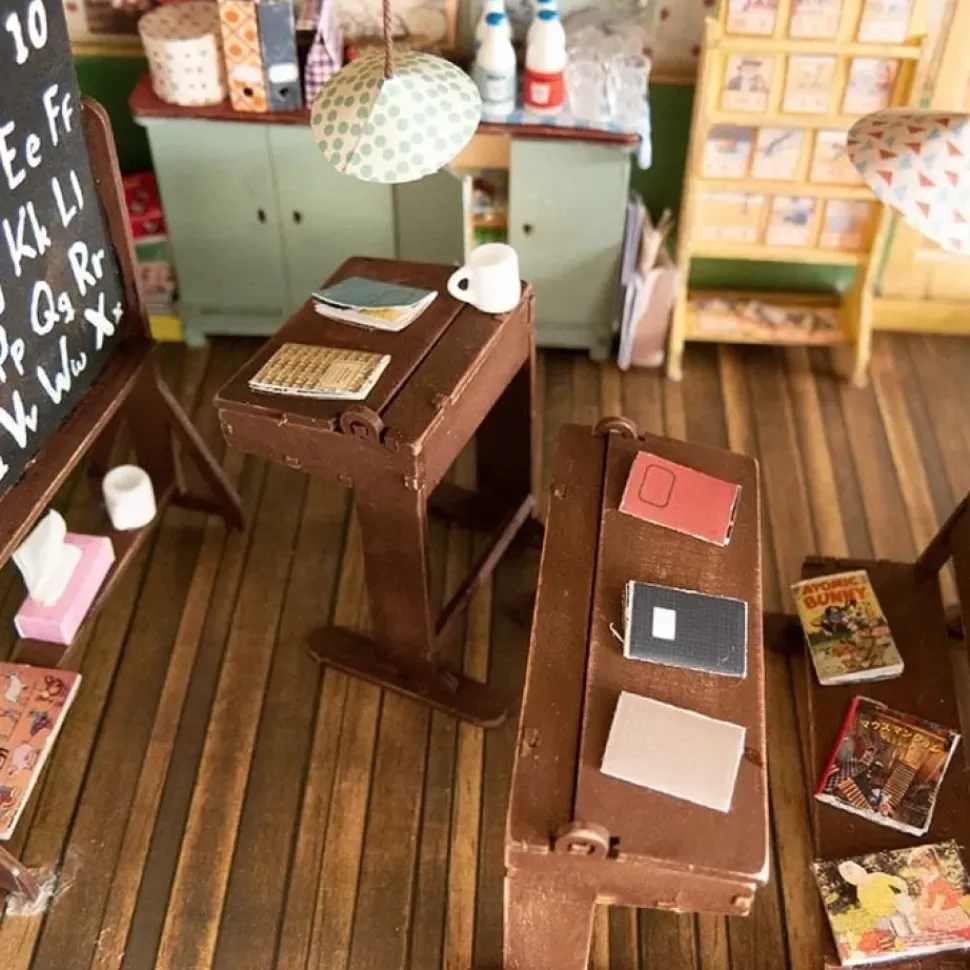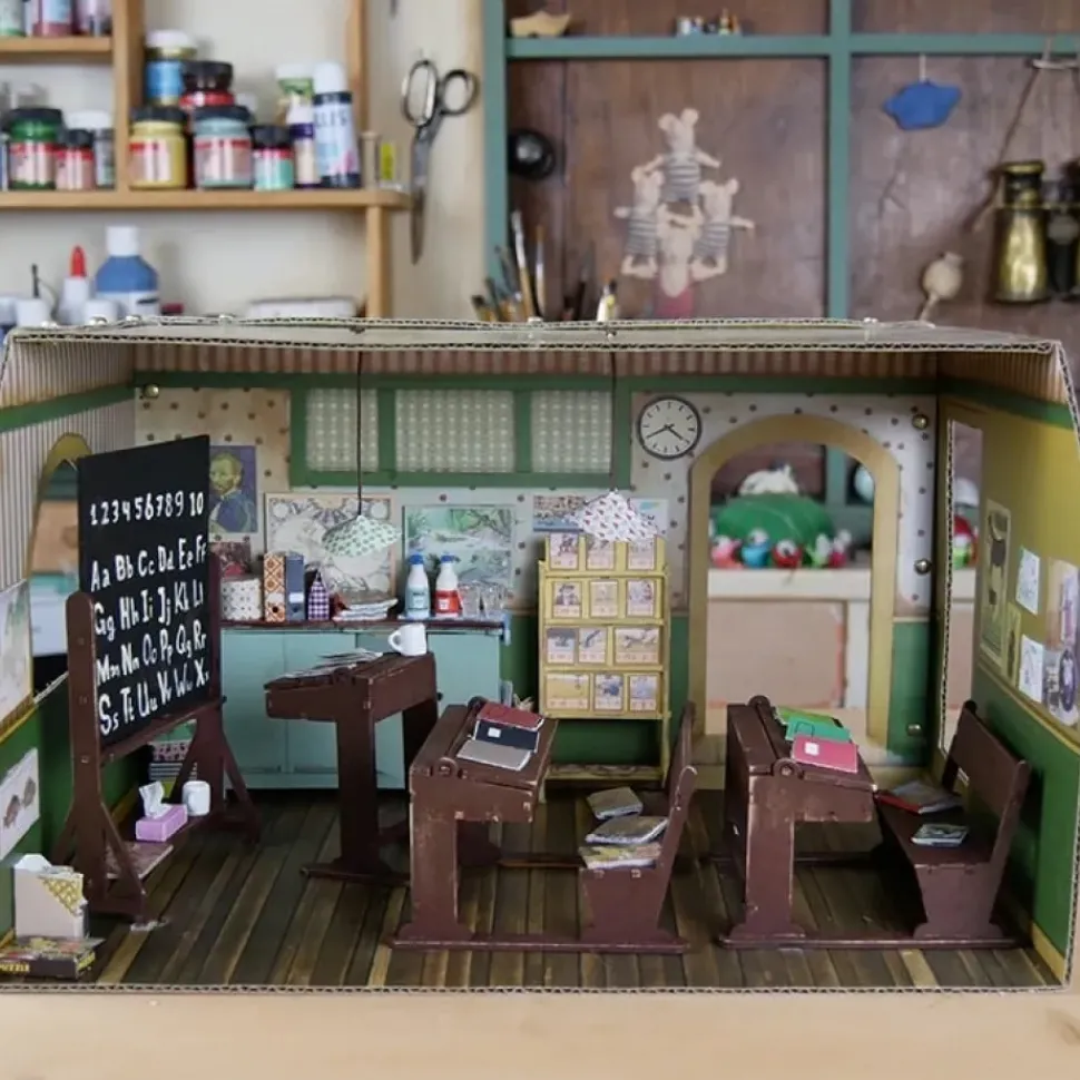 Open nu een schooltje in jouw Muizenhuis!Met dit knutselpakket bouw je in een handomdraai een klaslokaal voor jouw Muizenhuis. Laat jouw fantasie vrije loopen verf of versier elk meubeltje zoals jij dat graag wil.