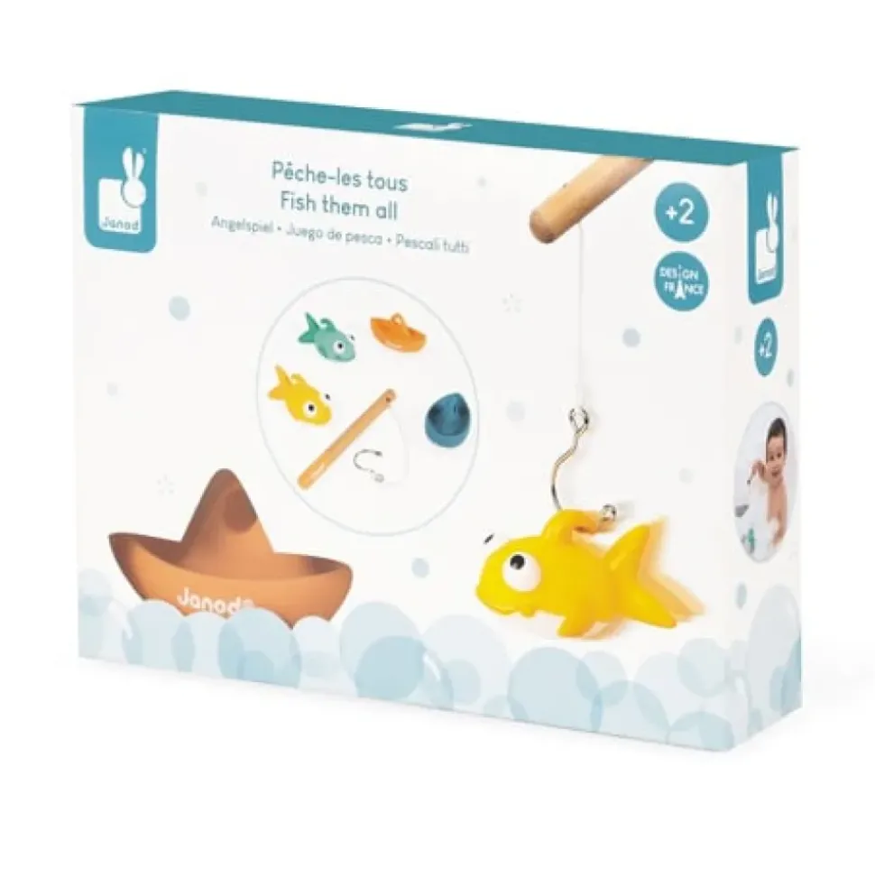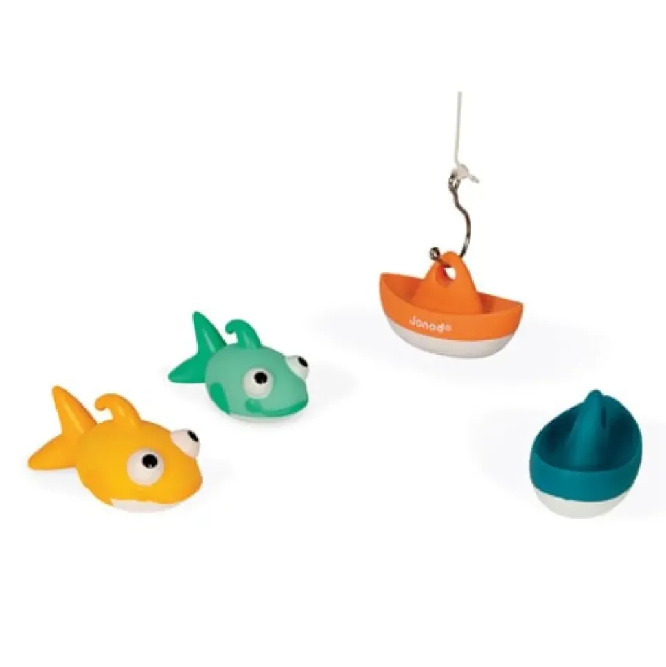 Een leuke set van Janod bestaande uit een hengel, 2 bootjes en 2 visjes om op te hengelen. Pak de boten en kleine visjes zo snel mogelijk. Ideaal om in bad de behendigheid en de concentratie te ontwikkelen.