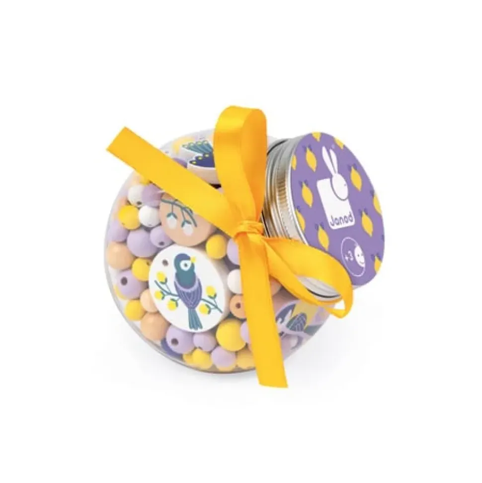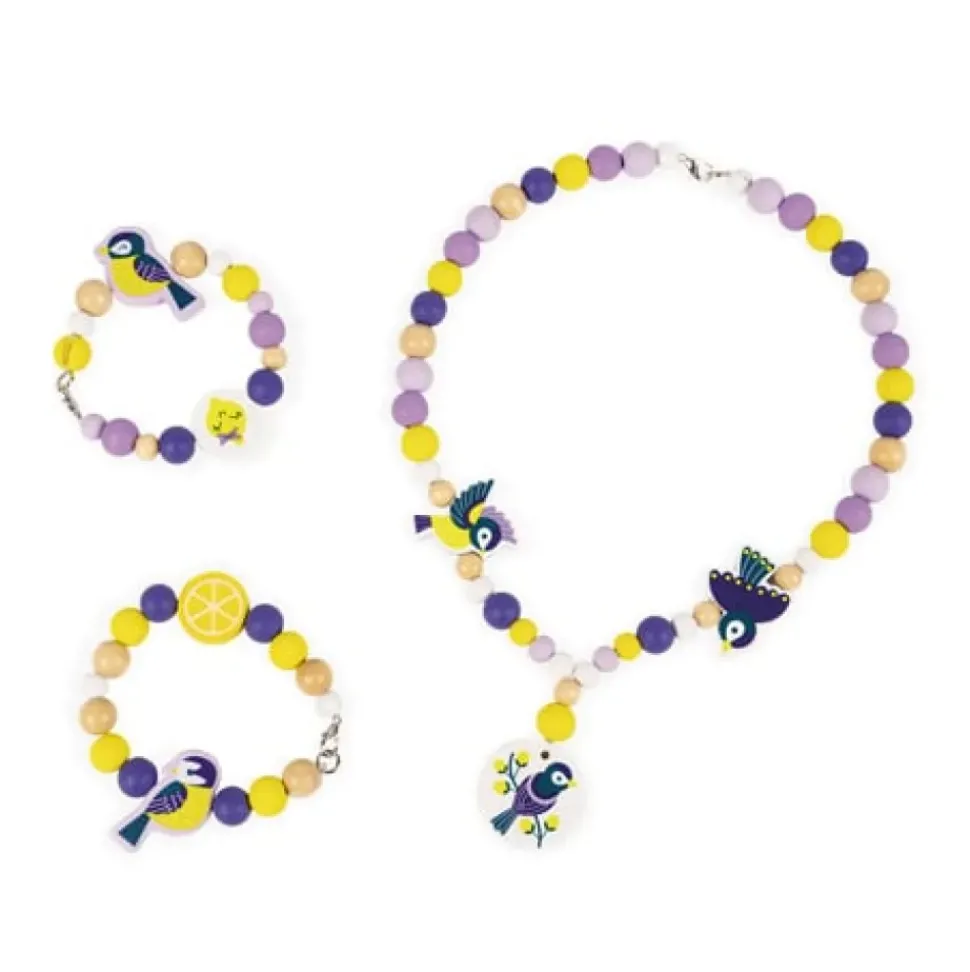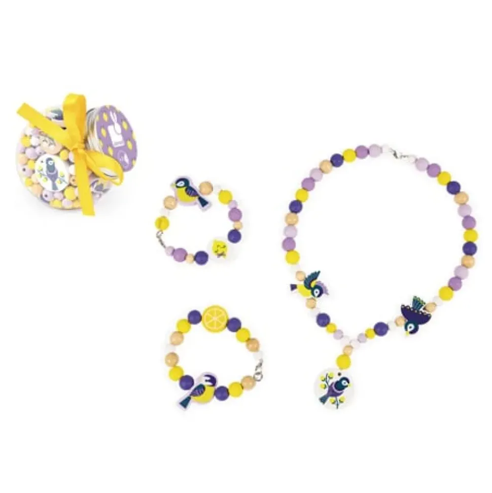 Deze set van Janod bestaat uit 220 houten pareltjes waarvan 18 houten amuletjes met vogels als thema, 5 sluitingen, 3 meter elastisch nylon draad. Geschikt voor kinderen vanaf 6 jaar.