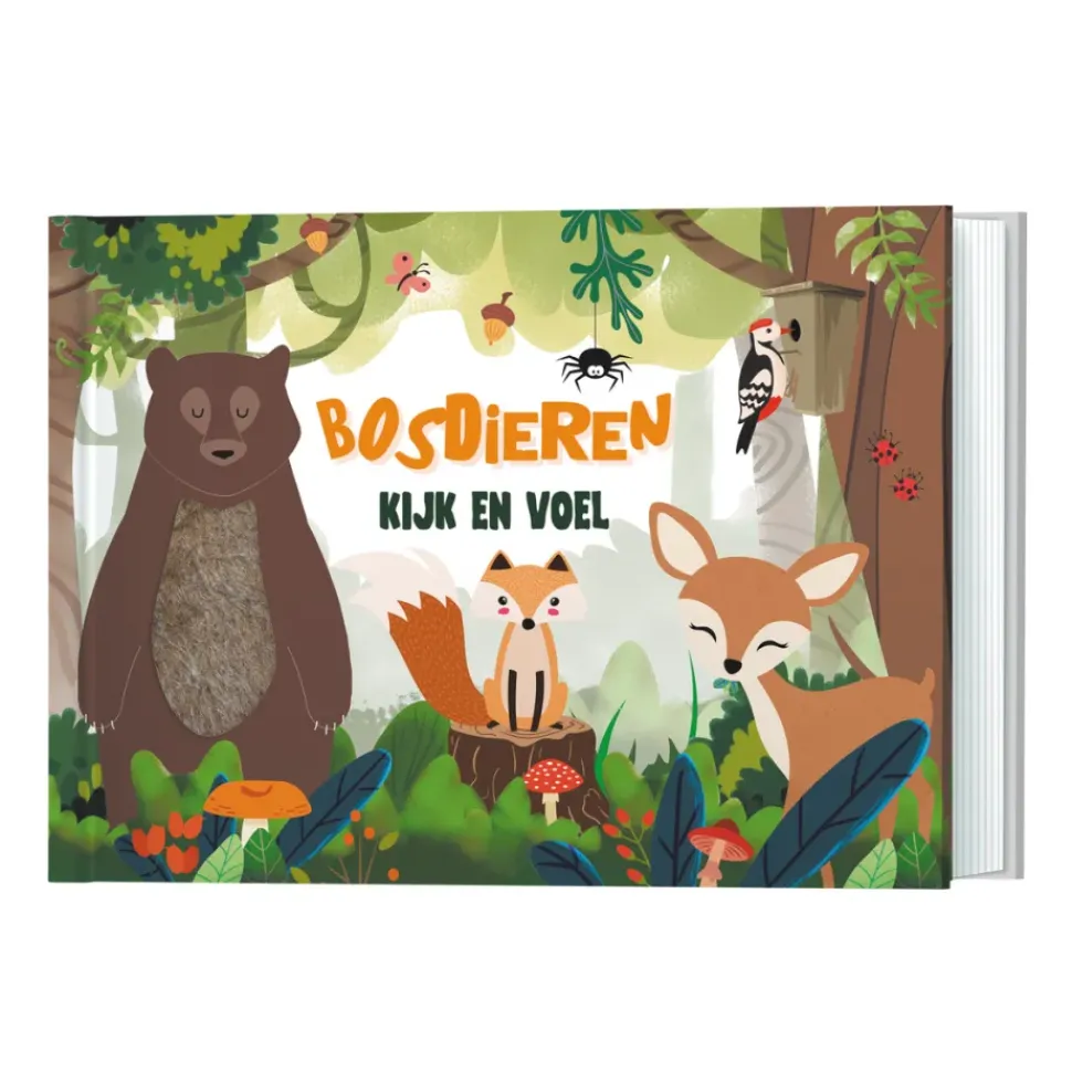 Welke dieren leven er in het bos? In dit boekje leer je ze kennen, maar kun je ze ook aaien! Stevig boekje voorzien van mooie illustraties, stofjes en lieve rijmpjes om voor te lezen maar waarmee je kindje ook zelf kan spelen en ontdekken.