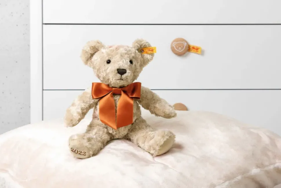 Sinds 1902 is de teddybeer een metgezel voor alle kinderen. Met een lengte van 34 cm, het jaartal 2022 onder zijn zool geborduurd en een feestelijke strik om zijn hals is Cosy Teddybeer van Steiff de trouwe en knuffelzachte vriend om cadeau te geven.