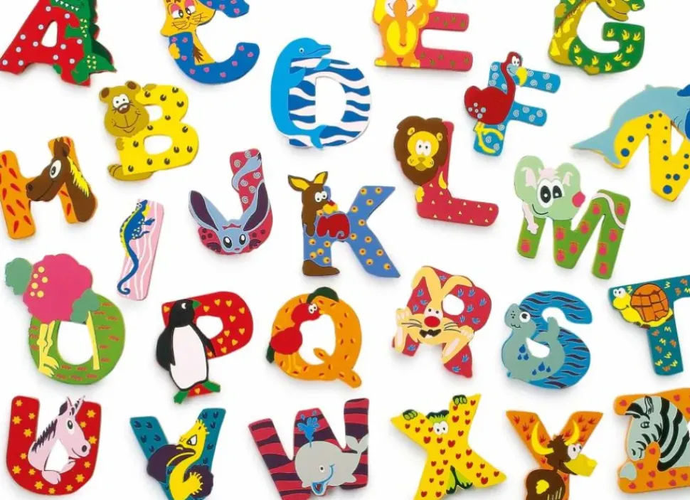 Letters van hout van het alfabet A t/m Z met een leuk dierenmotief. Geschikt voor aan de wand, op de deur in de kinderkamer of op een verjaardagsfeestje waar je de naam van het kind vrolijk neerlegt naast de verjaardagstaart!