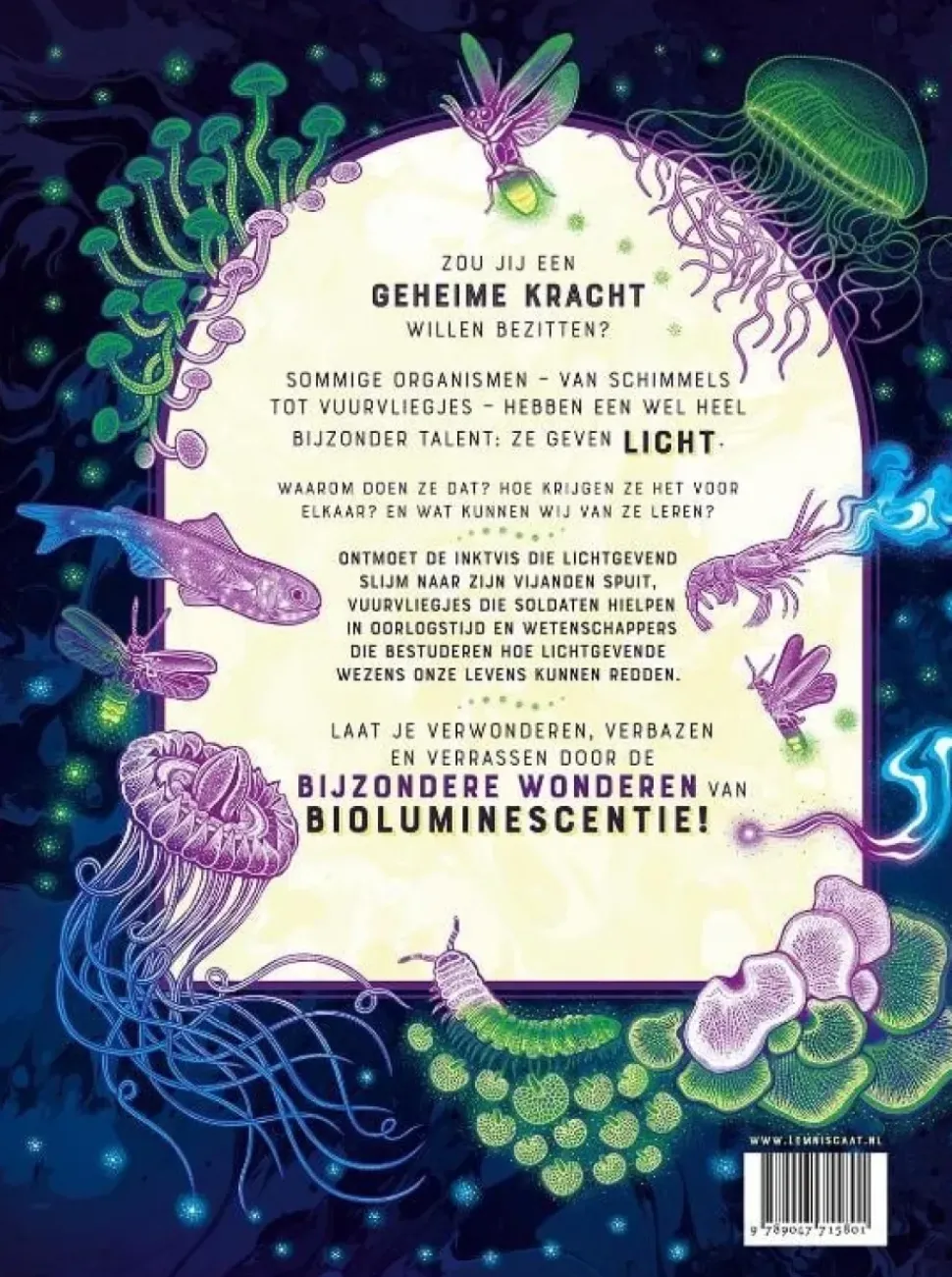 Ga mee op een magische reis door de diepzee, glimmende grotten en donkere bossen en laat je verwonderen, verbazen en verrassen door de bijzondere wonderen van bioluminescentie in dit boek waarvan de prenten licht lijken te geven.