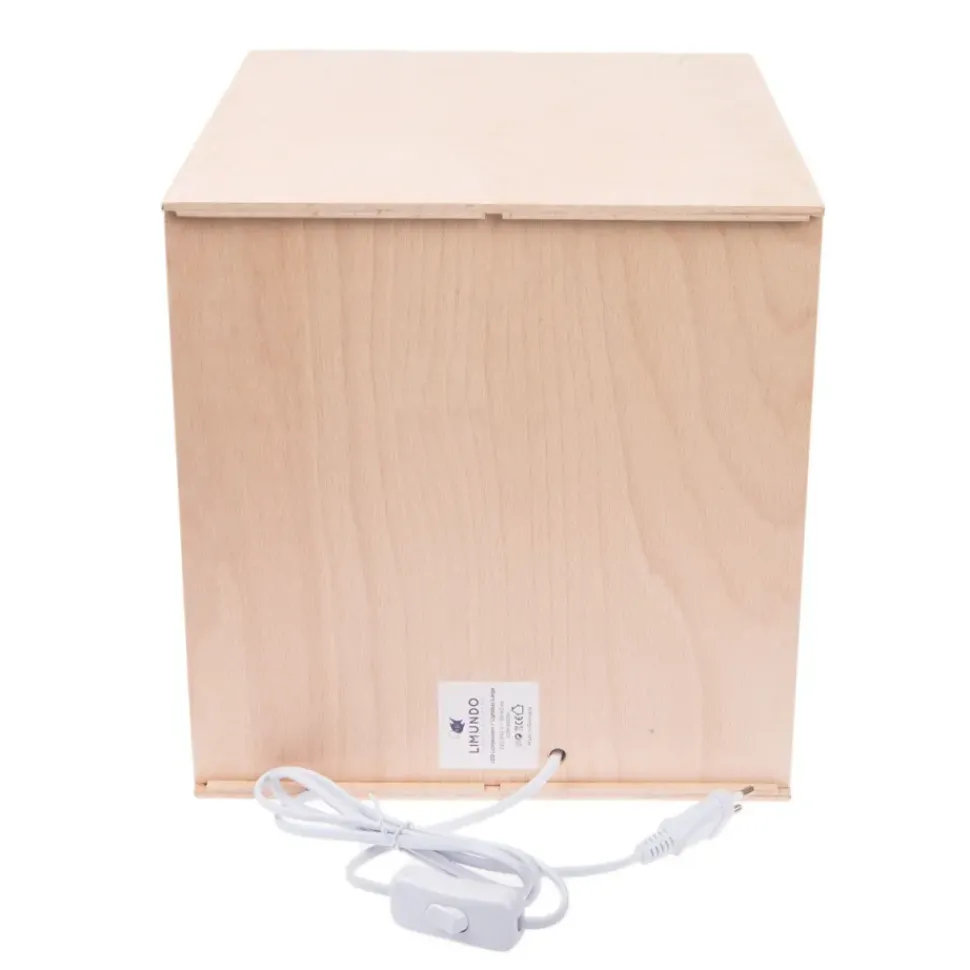Een mooie houten kubuslamp van Limundo. Uniek aan deze kubuslamp is het sfeervolle licht dat aan twee zijden doorgegeven wordt. De kubuslamp kan ook als nachtkastje of als decoratie in bijvoorbeeld een open wandkast worden opgesteld.
