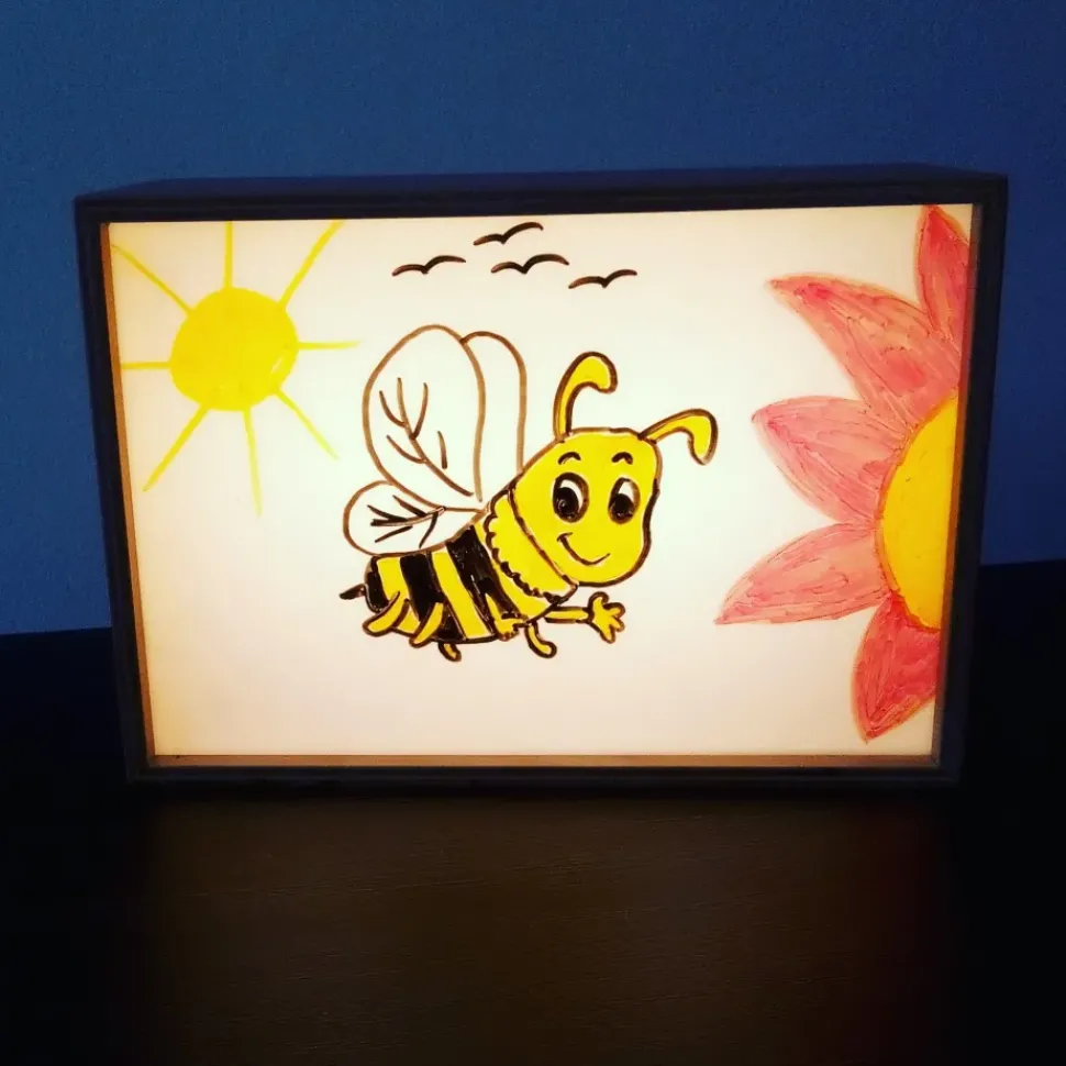 Deze lamp voor in de kinderkamer is een wandlamp in de vorm van een rechthoekig kastje wat aan de muur bevestigd kan worden maar ook losstaand kun je deze lamp neerzetten. Hij is licht van gewicht, slechts 1,3 kg dus de kinderen kunnen hem zelf ook makkelijk overal mee naar toe nemen. Dus als ze ergens gaan logeren kunnen ze hun eigen lamp meenemen. De frontplaat is gemaakt van acrylaat en is gemakkelijk te verwisselen met een ander motief. Door middel van innovatieve LED technologie wordt er verlicht. Het verbruik is 3 Watt dus erg spaarzaam met energie. De lamp aan laten voor oriëntering of sfeerverlichting kost dus niet veel energie. De behuizing van de wandlamp is gemaakt uit MDF hout. De lamp is verkrijgbaar in de kleur wit en naturel beuken. De lichtbron is niet vervangbaar maar gezien de lange levensduur zal dat ook niet nodig zijn.