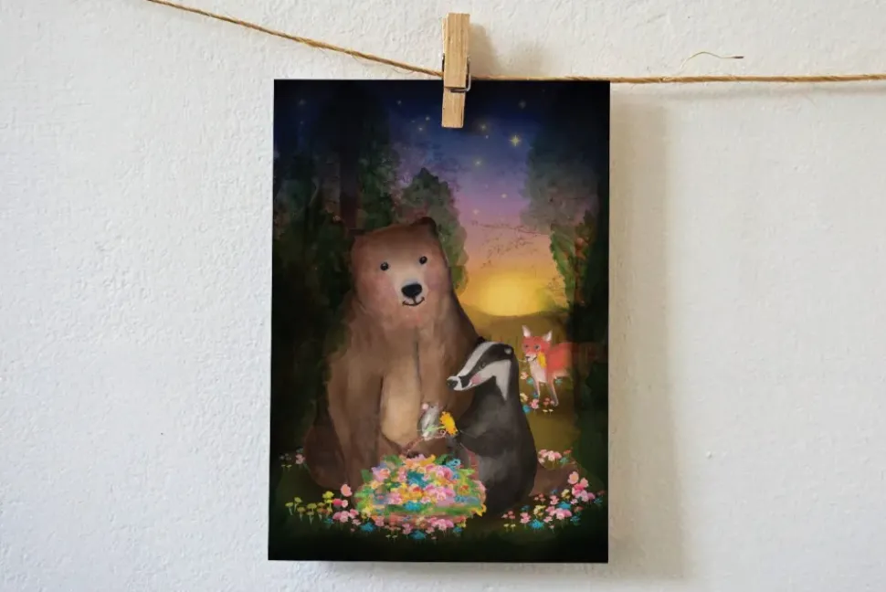 Lotte Drouen Ansichtkaart Beer, das en vos bedankt!