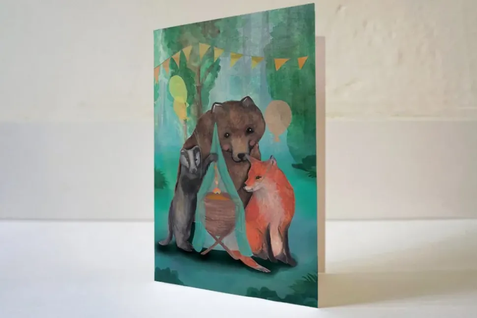 De illustratie van de kaarten van Lotte Drouen zijn door haar persoonlijk met de hand getekend en worden in kleine oplages gedrukt op mooi en dik structuurpapier. Het is zo net een klein schilderijtje. De wenskaart (gevouwen kaart) heeft een doorlopende illustratie op de achterkant. Binnenin is er ruimte voor een tekst. De wenskaart komt met een mooie kraftenvelop waarin de kaart verstuurd kan worden.