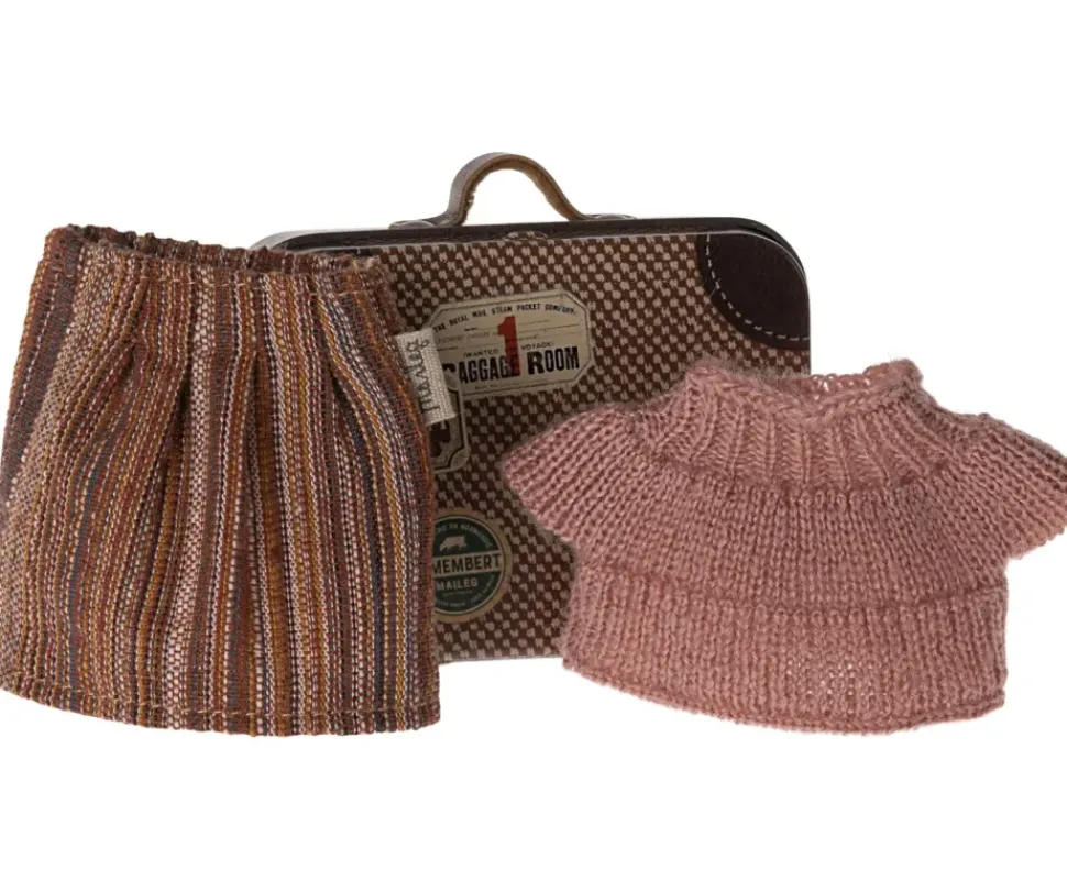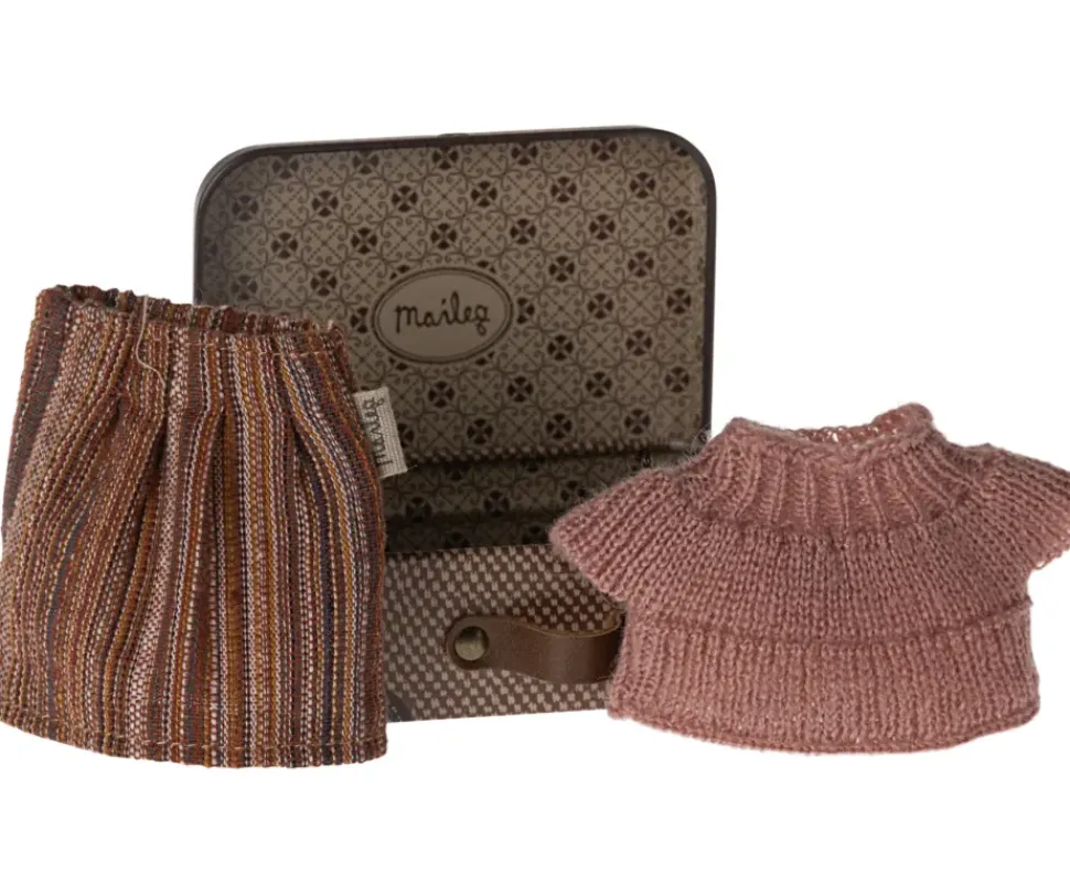Verkleed oma muis met deze prachtige set kleding van Maileg. Het is verpakt in een kleine metalen koffer, waardoor je het gemakkelijk mee kunt nemen op vakantie.