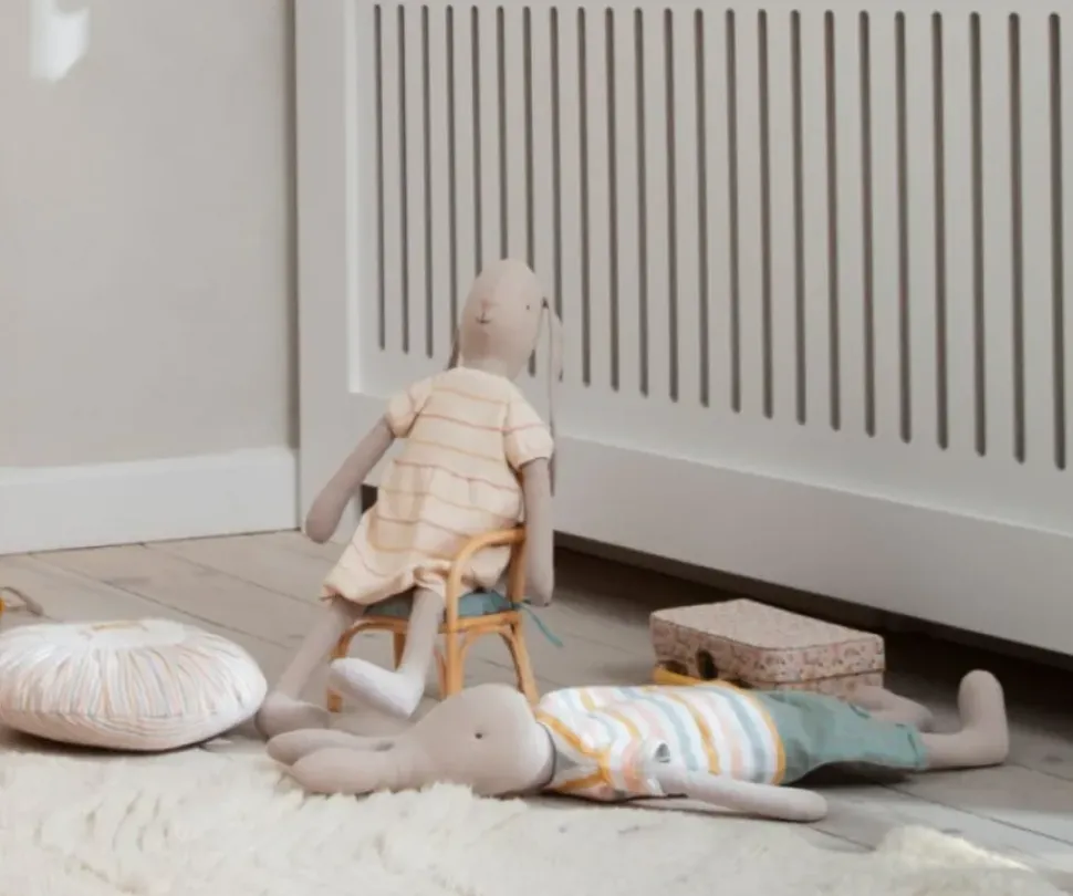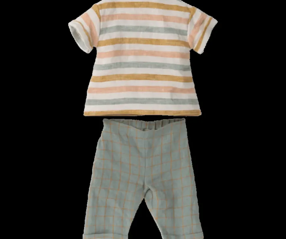De bunny & rabbit collectie van Maileg is gemaakt van zacht natuurlijk linnen en katoen – wat een heerlijk handgevoel en uitstraling geeft. Dit konijn draagt een mooie broek en shirt.