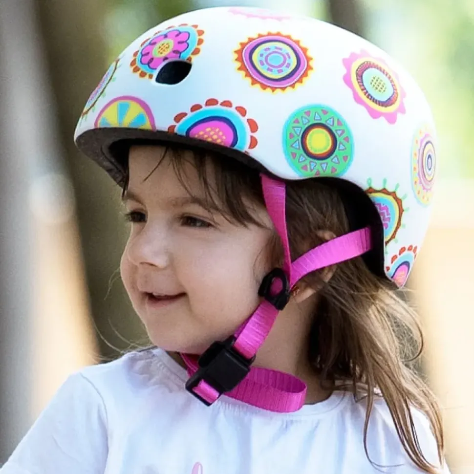Deze coole Doodle Dot helm van Micro Step is licht in gewicht en veilig. De helm heeft een quick-release magnetische sluiting, geïntegreerd LED achterlampje en is geschikt voor step en fiets.