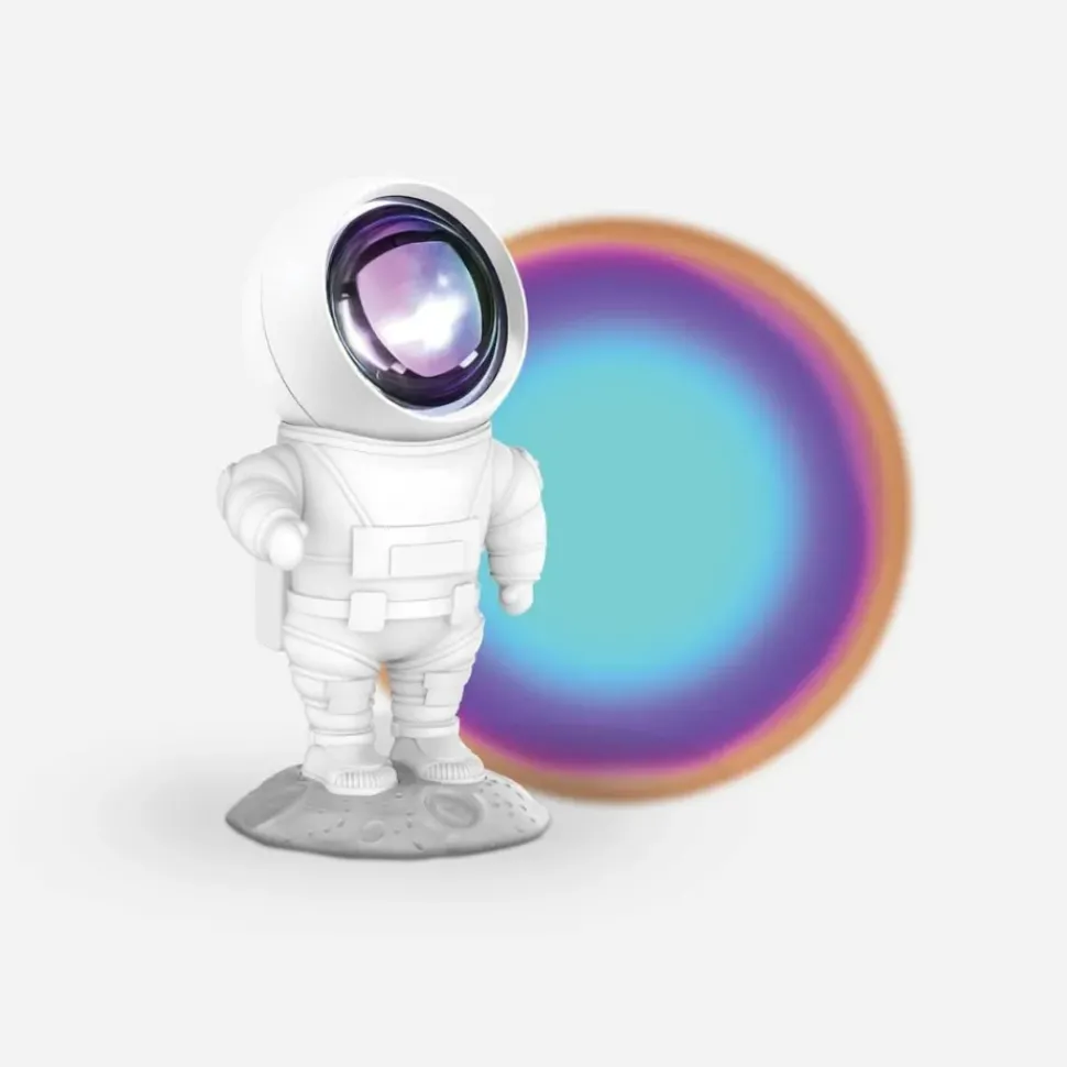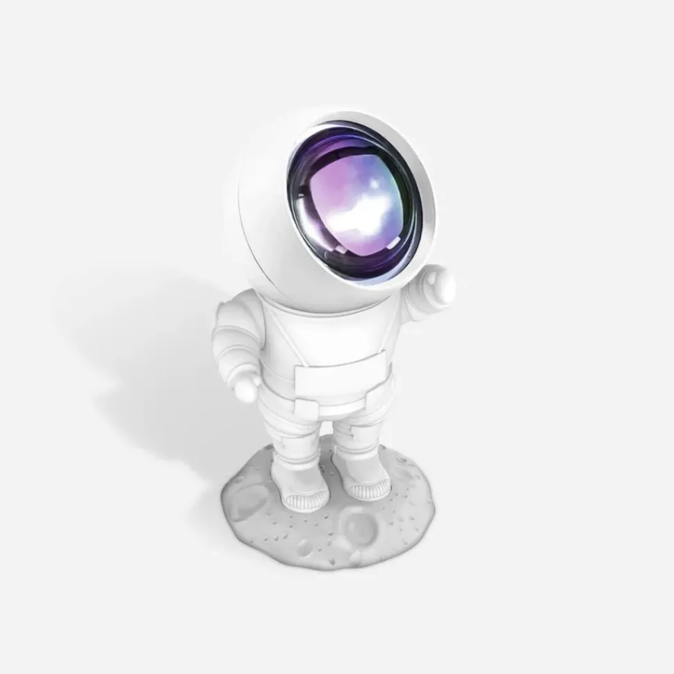Een kleine, lichte lamp die gemakkelijk mee te nemen is, waar je ook gaat. Voor alle liefhebbers van de ruimte. Laat de kleine Astro je meenemen op reis en je in slaap sussen. Deze lamp werkt op (oplaadbare) batterijen, waardoor het product draagbaar is.