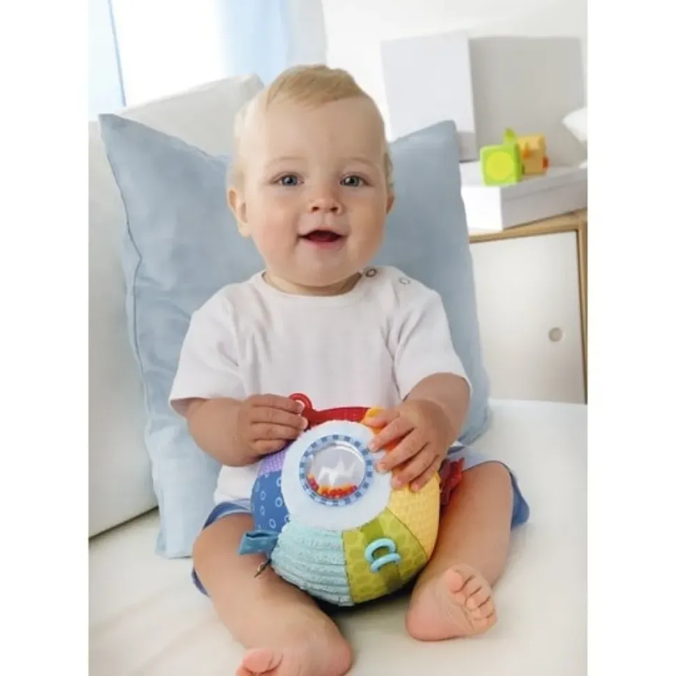 Rond en bont rolt het speelplezier binnen! Elke baby kruipt direct achter deze bal aan: de bonte kleuren en verschillende vormen vragen immers om ontdekt en onderzocht te worden. En ook de spiegel en de rammelaar zijn bijzonder boeiend.