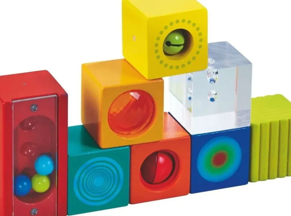 Een belletje, een rammelaar, een doorkijk, een knikkerspel … deze ontdekkersstenen bevatten veel effecten, die kinderen met al hun zintuigen kunnen onderzoeken. En natuurlijk kunnen met de ontdekkersstenen ook prachtige torentjes worden gebouwd.