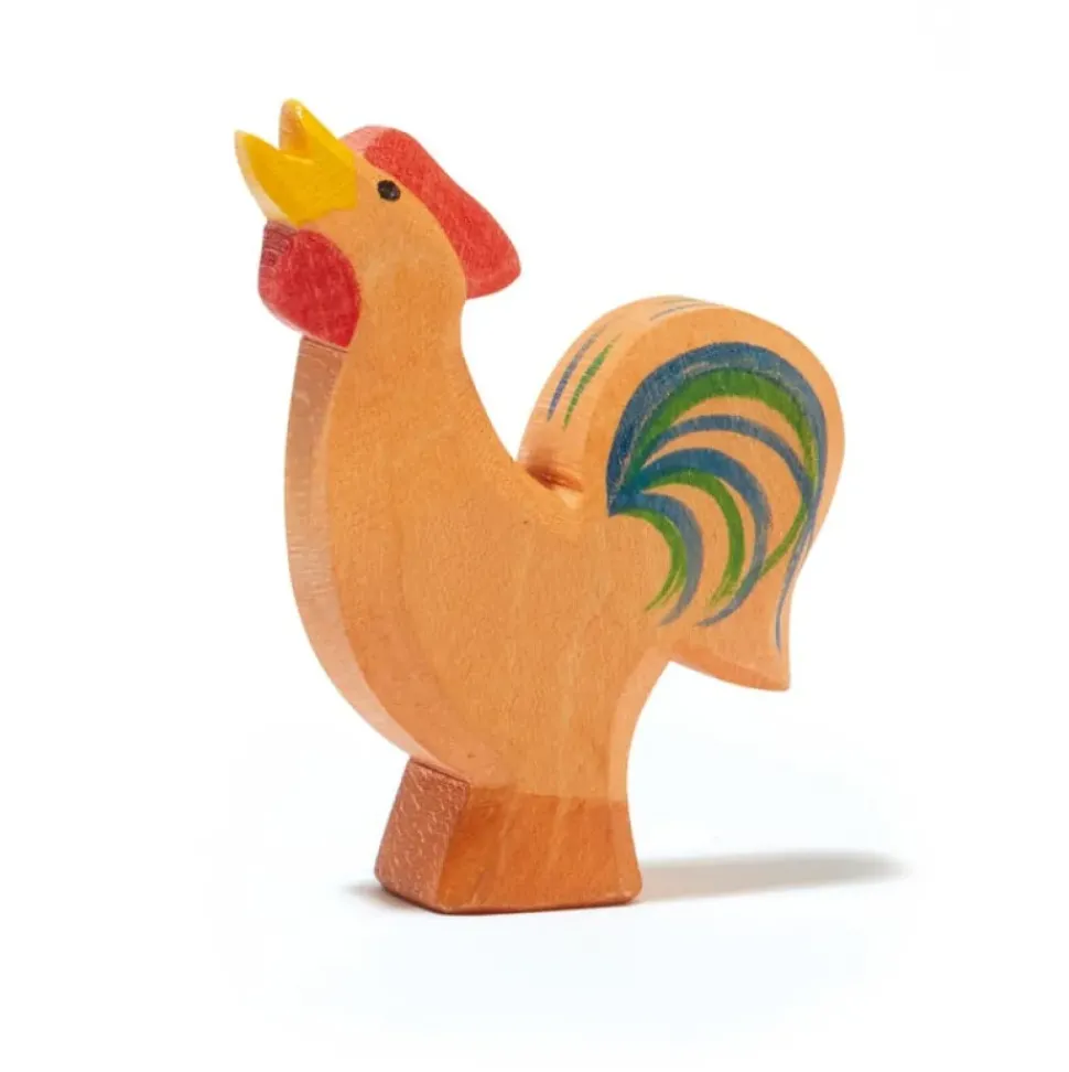 Dit is de met de hand gemaakte en van inheems hout geteelde Bremer haan van Ostheimer. De haan komt voor in het sprookje van de Bremer Stadsmuzikanten. Hoogte: 6 cm.
