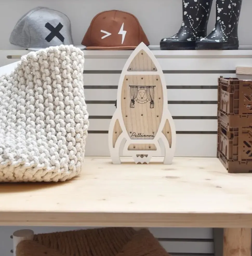 Dit lampje in de vorm van een raket van Pellianni past goed in elke kinderkamer. Het lampje is gemaakt van FSC hout waarin LED lampjes zitten. Gemakkelijk verplaatsbaar doordat het op batterijen werkt.