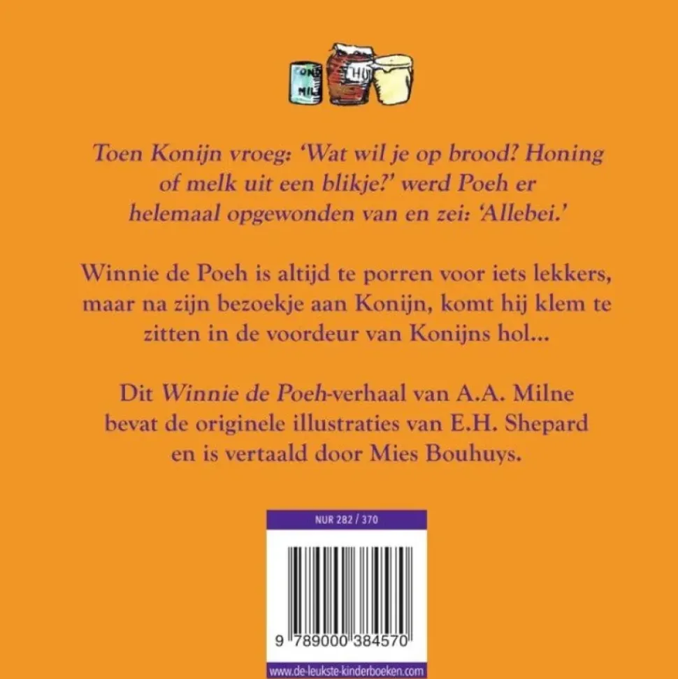 ‘Wie denkt dat Winnie de Poeh slechts een simpele teddybeer in een tekenfilm is, heeft het mis. We kunnen hartstikke veel van ’m leren.’ Happi.kids Deze prachtige gebonden uitgave bevat een hartverwarmend Winnie de Poeh-verhaal van A.A. Milne. In Poeh gaat op bezoek gaat Poeh langs bij Konijn en komt hij klem te zitten in het gat van Konijns hol. Een geweldige gelegenheid om een nieuwe generatie te laten kennismaken met de personages uit het Honderd-Bunders-Bos. Gecombineerd met de iconische illustraties van E.H. Shepard zijn deze verhalen de perfecte introductie in de wereld van Winnie de Poeh voor kinderen van 5 jaar en ouder.