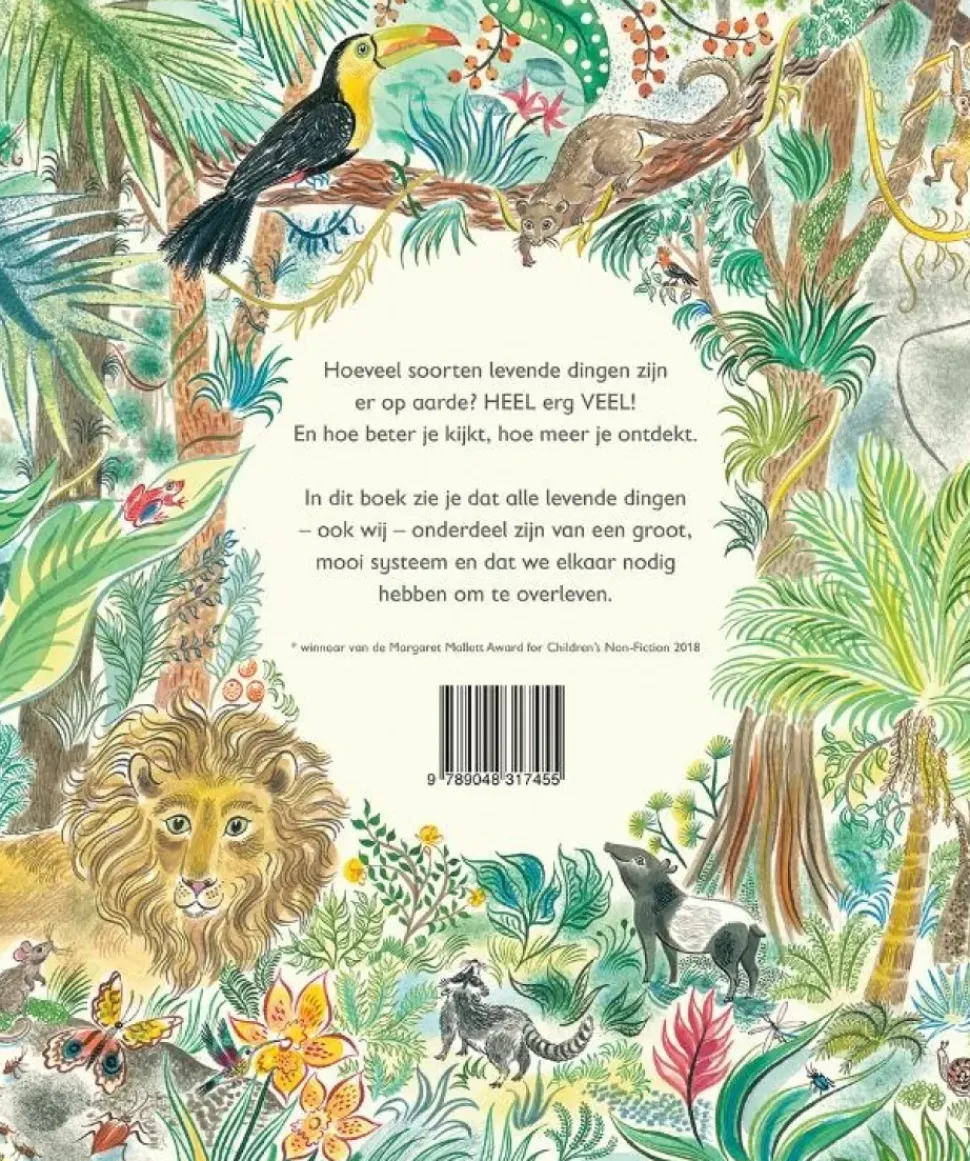 Hoeveel soorten levende dingen zijn er op aarde? HEEL erg VEEL! En hoe beter je kijkt, hoe meer je ontdekt. In dit boek zie je dat alle levende dingen – ook wij – onderdeel zijn van een groot, mooi systeem en dat we elkaar nodig hebben om te overleven. *w
