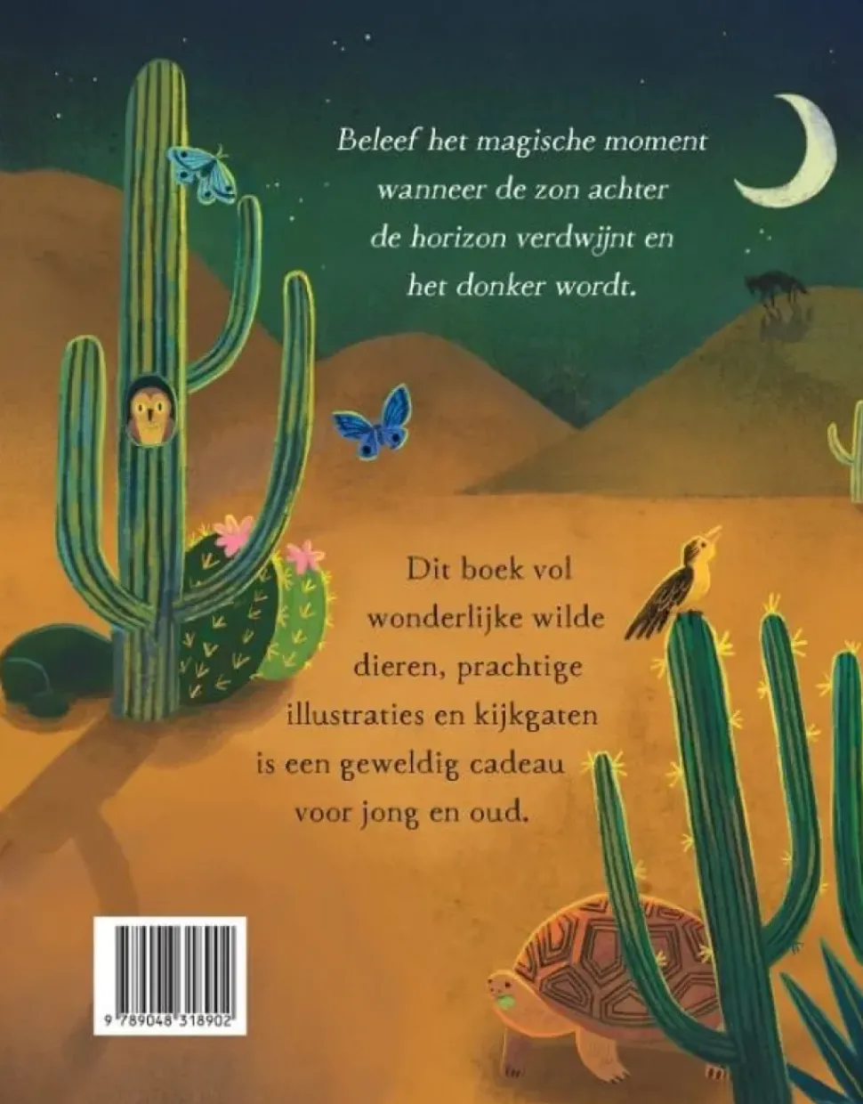 Beleef het magische moment wanneer de zon achter de horizon verdwijnt en het donker wordt. Dit boek vol wonderlijke wilde dieren, prachtige illustraties en kijkgaten is een geweldig cadeau voor jong en oud.