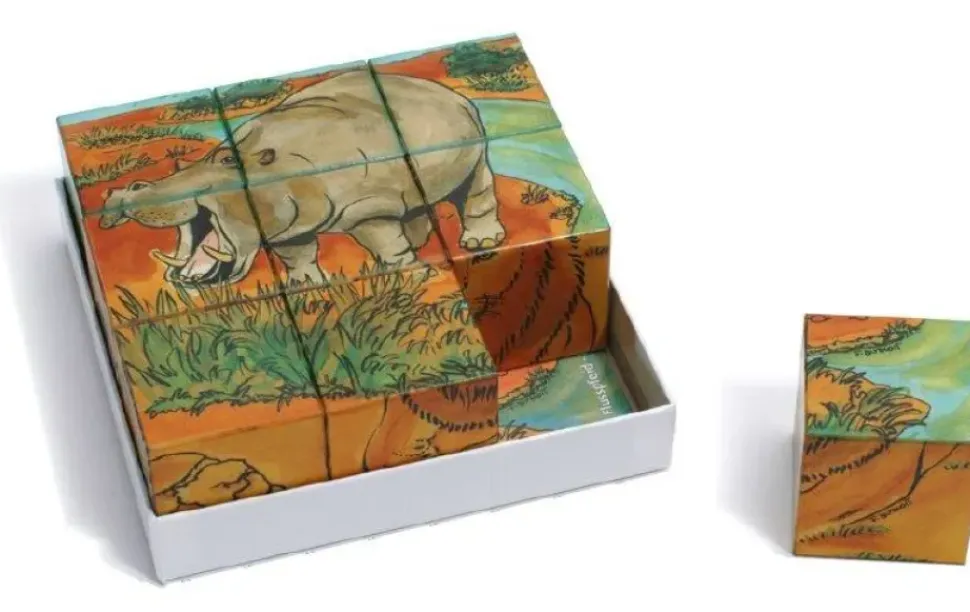 Dit is een schitterende blokkenpuzzel van Weizenkorn met daarop 6 afbeeldingen van dieren uit Afrika. De blokken zijn robuust gemaakt. Je kunt een nijlpaard, giraffe, leeuw, zebra, olifant en een aap in elkaar puzzelen.