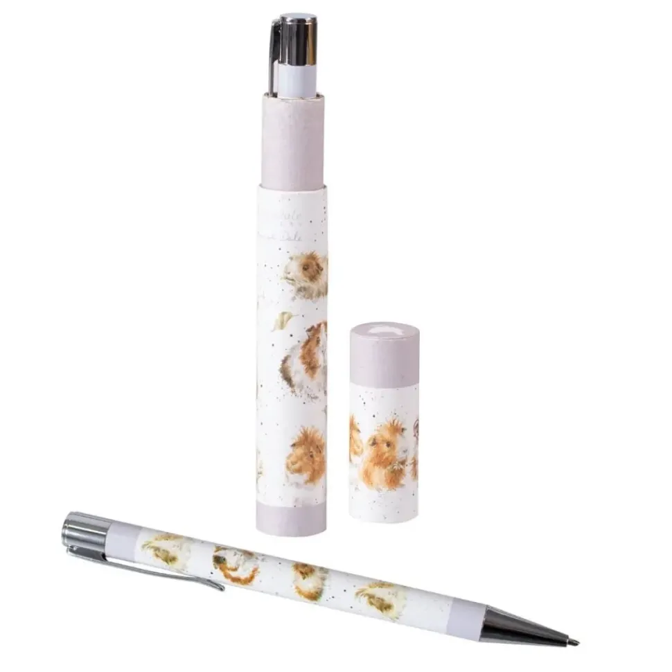 Deze pen van Wrendale Designs is voorzien van een motief van cavia's. De pen wordt geleverd in een mooie kartonnen koker met dezelfde mooie illustratie. Een leuk cadeau om te geven of gewoon voor jezelf. De vulling is te vervangen.