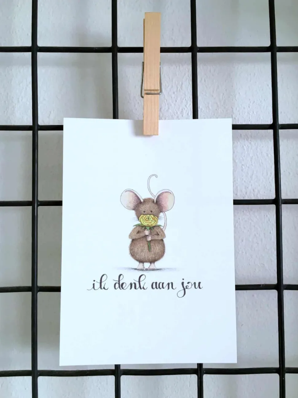 Anillustration Ansichtkaart Muis ik denk aan jou
