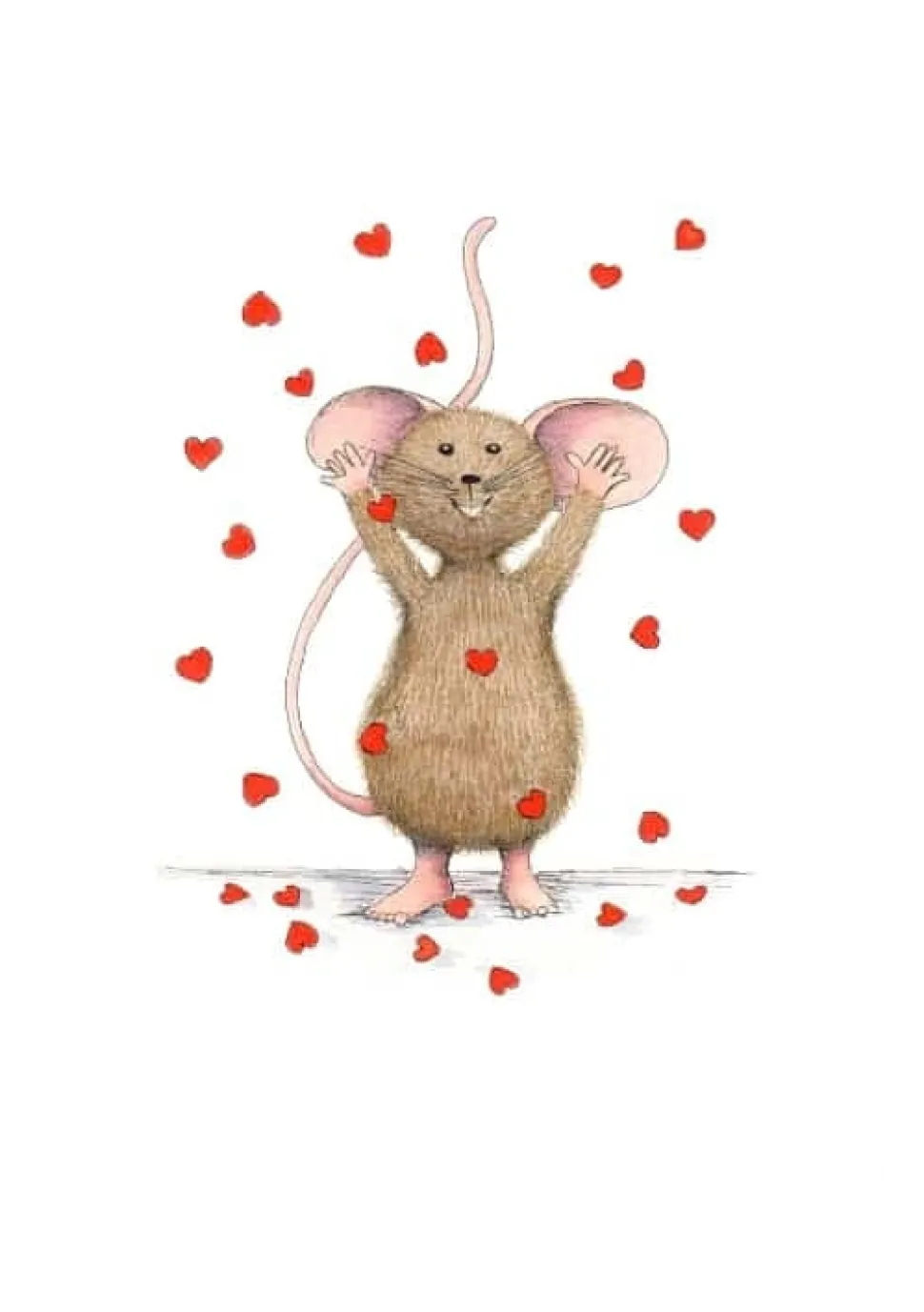 Anillustration Ansichtkaart Muisje gooit hartjes in de lucht